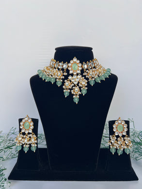 Amisha Kundan Set in Sage