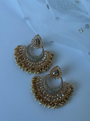 We carry many different styles and colours of earrings. We carry polki, kundan, and American diamond.