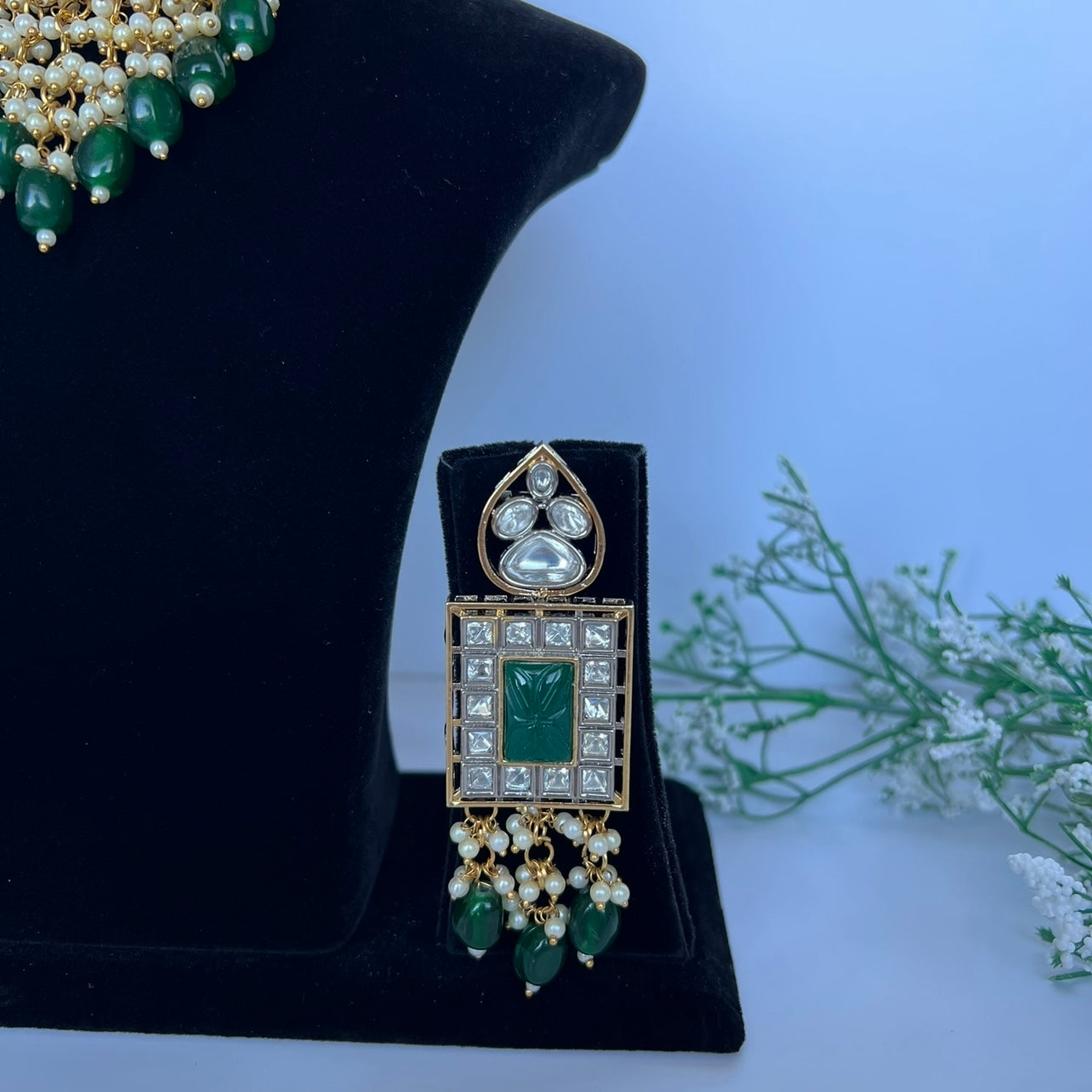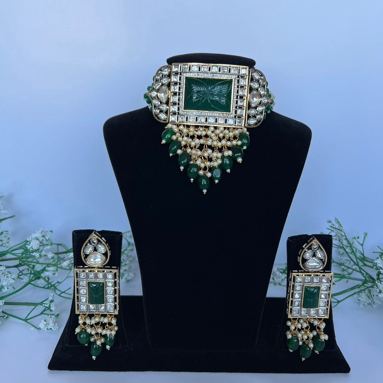 A stunning Amarpali stone choker set in emerald green with silver plating
