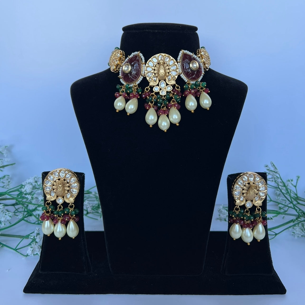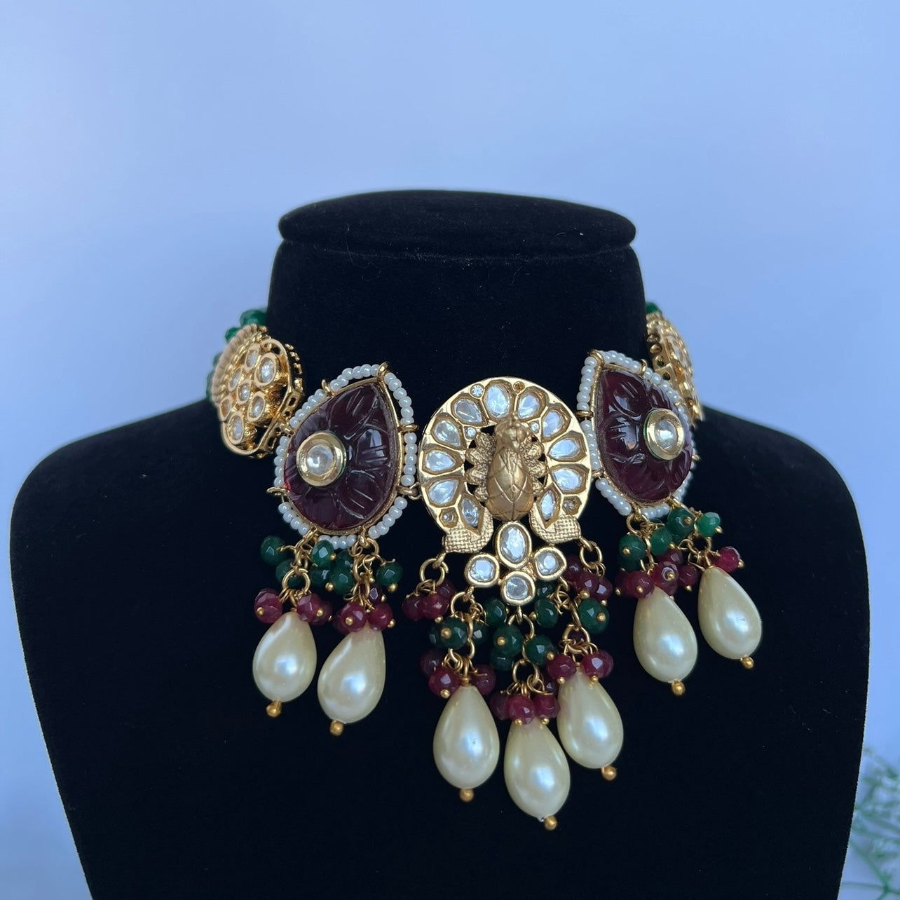 Amarpali and Tiyani kundan mmaroon and green set, super unique