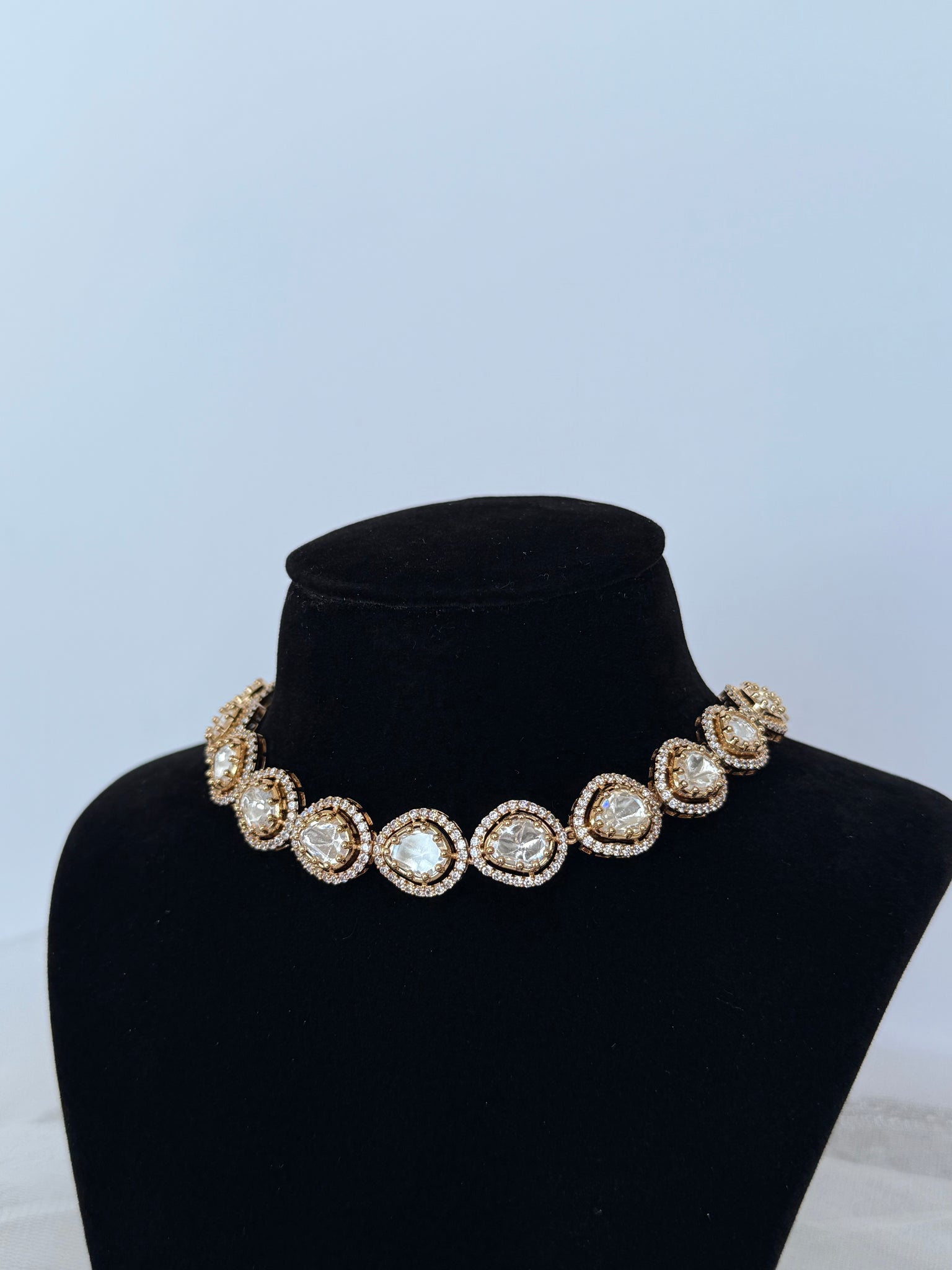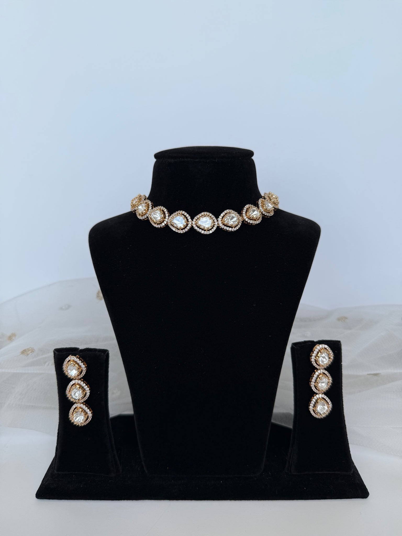 Gorgeous tiyani kundan necklace set with drop earrings gold plated
