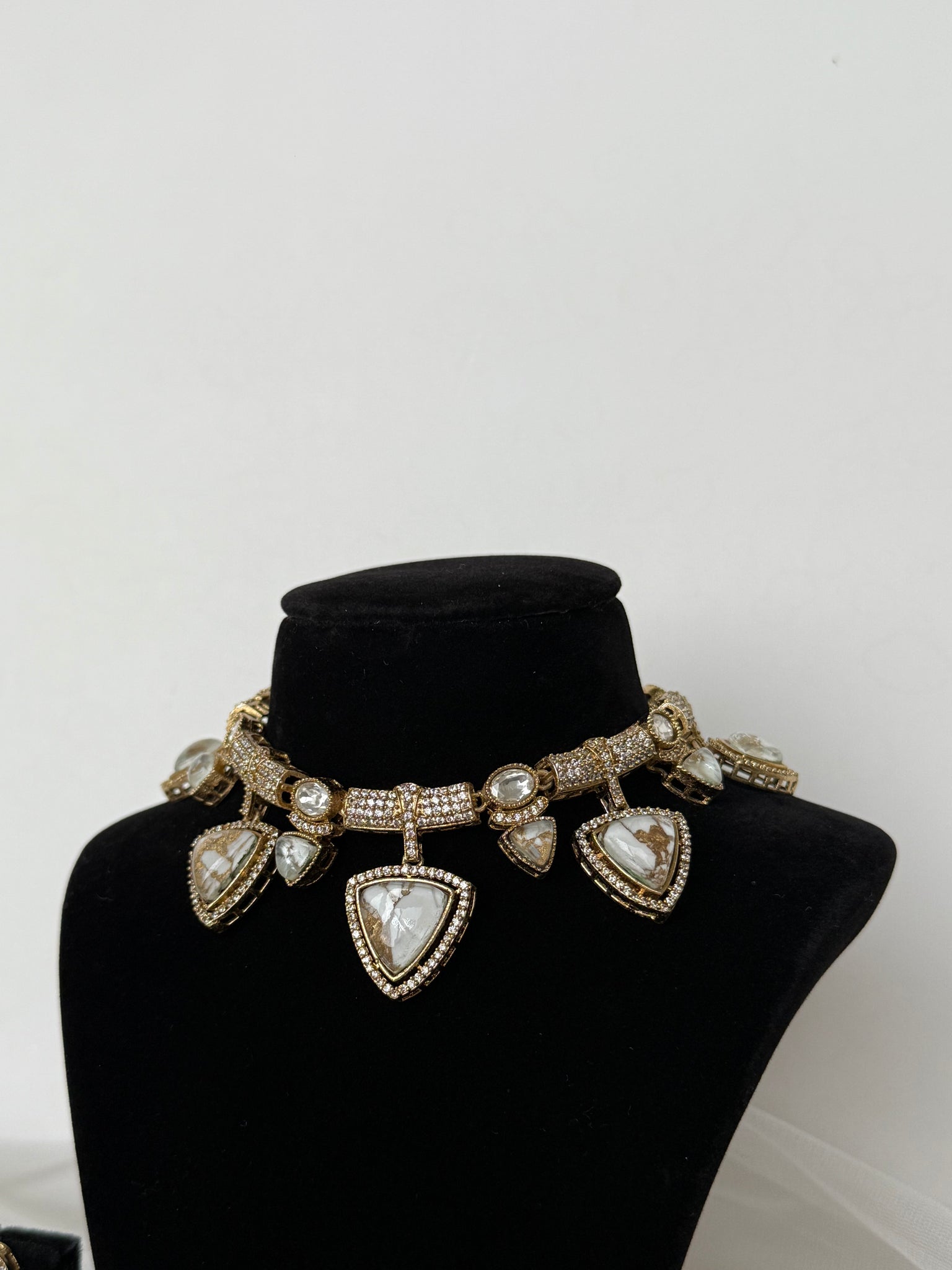 Gorgeous marble stone necklace set with earrings in kundan. A modern twist in a classic white