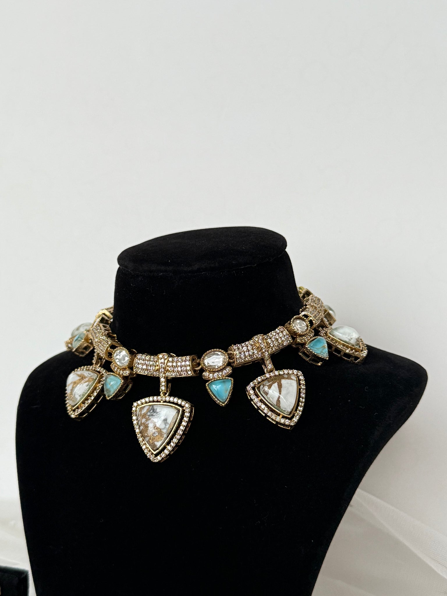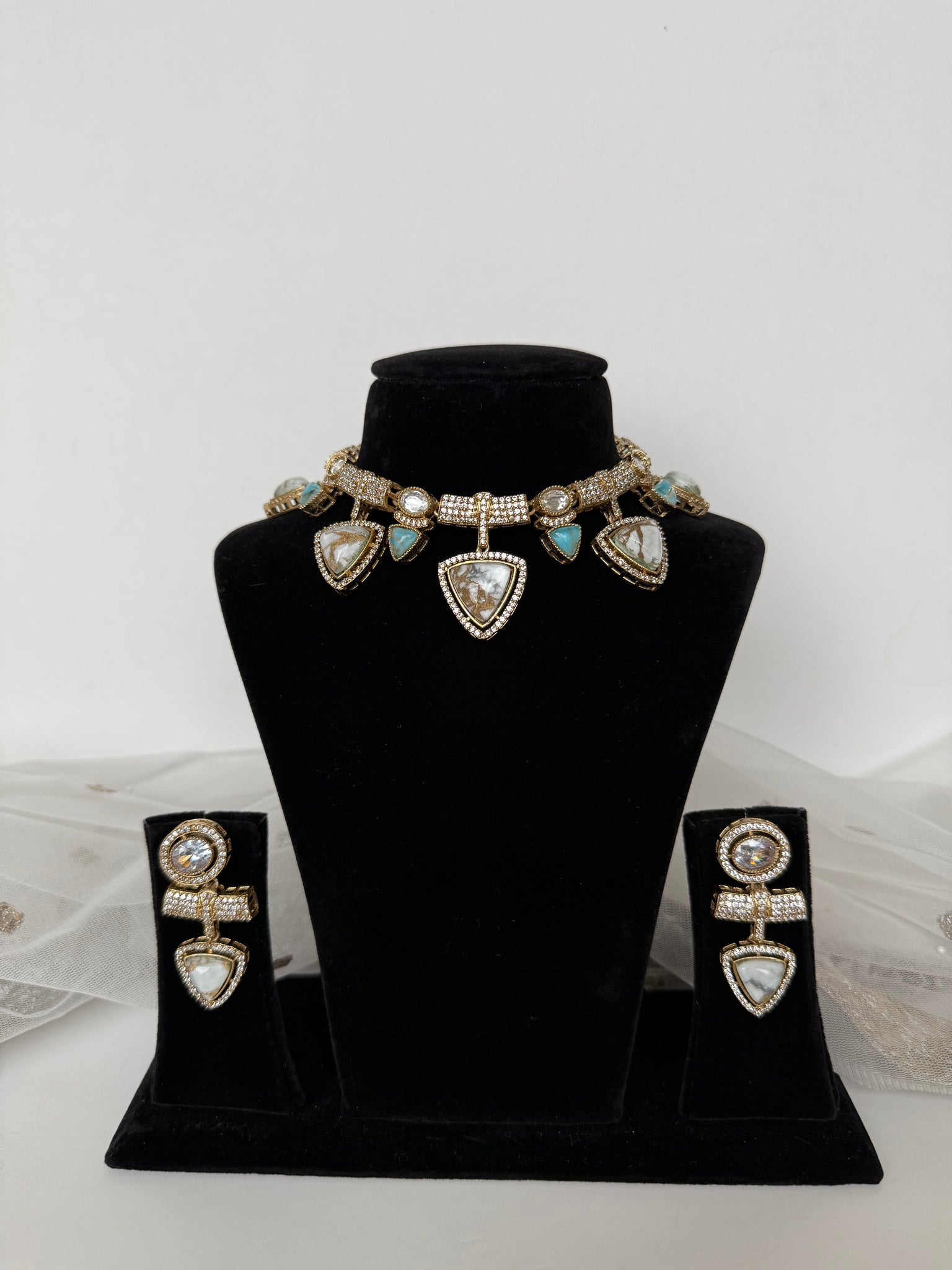 Gorgeous marble stone necklace set with earrings in kundan. A modern twist