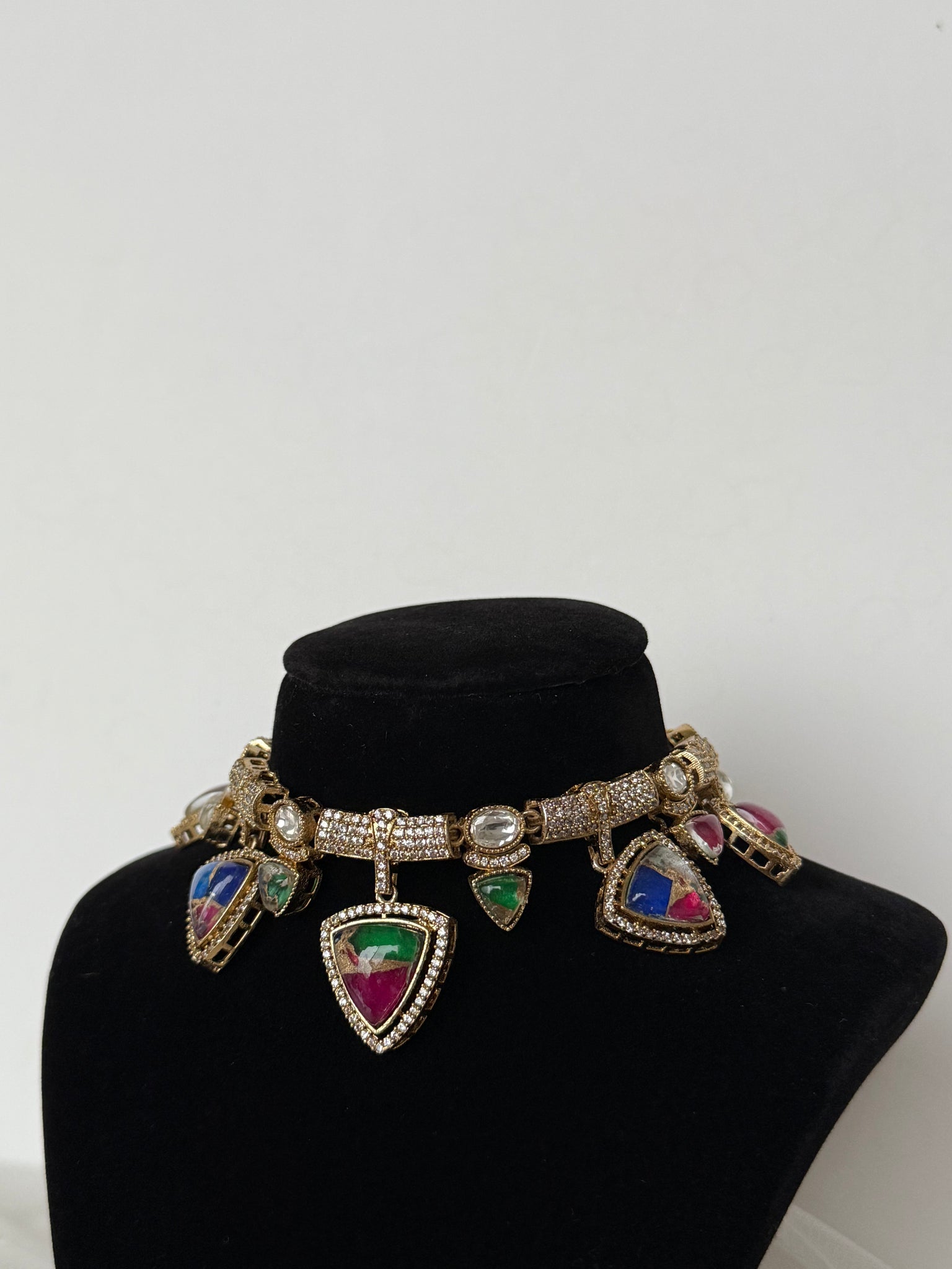 Gorgeous marble stone necklace set with earrings in kundan. A modern twist