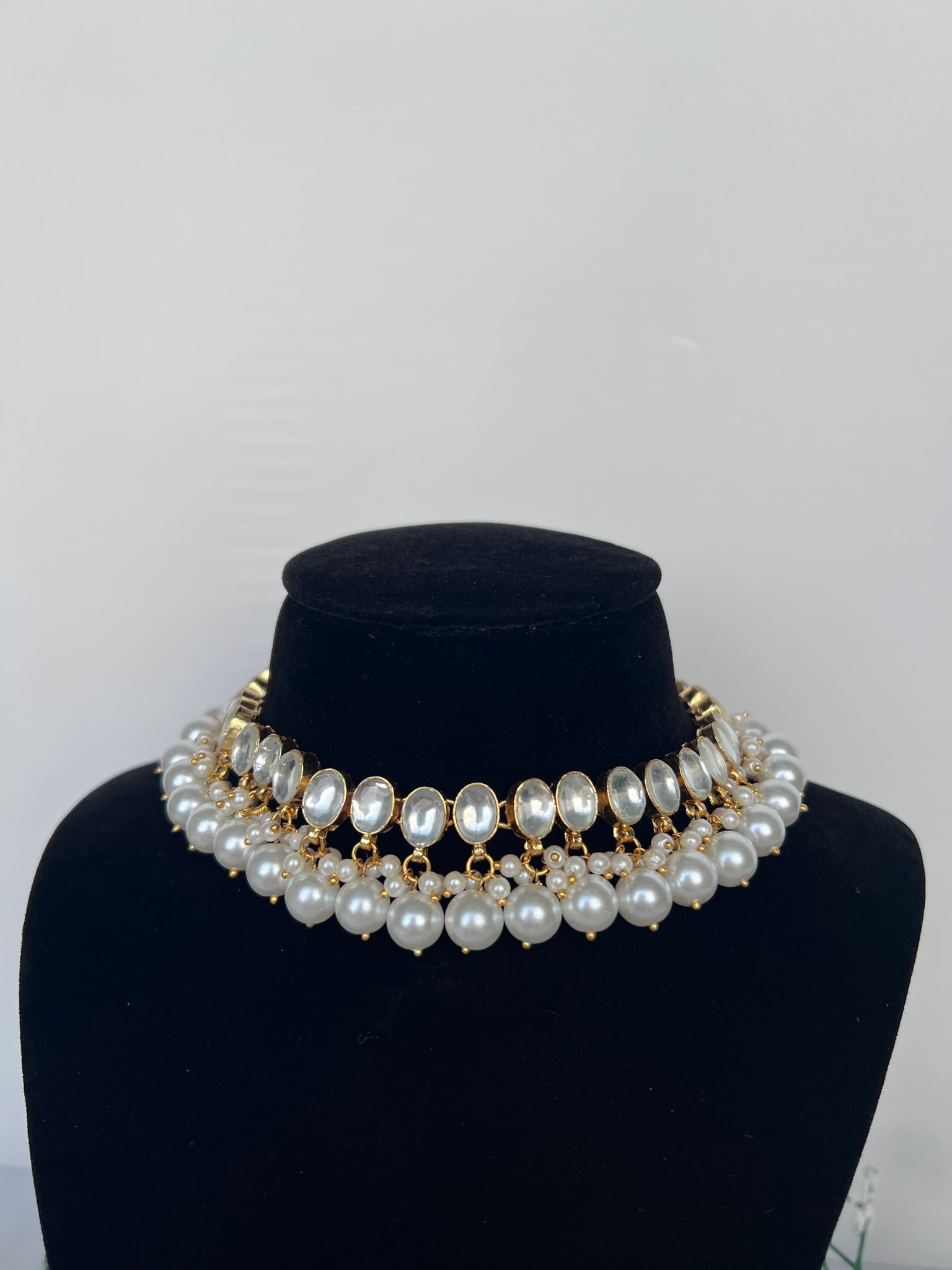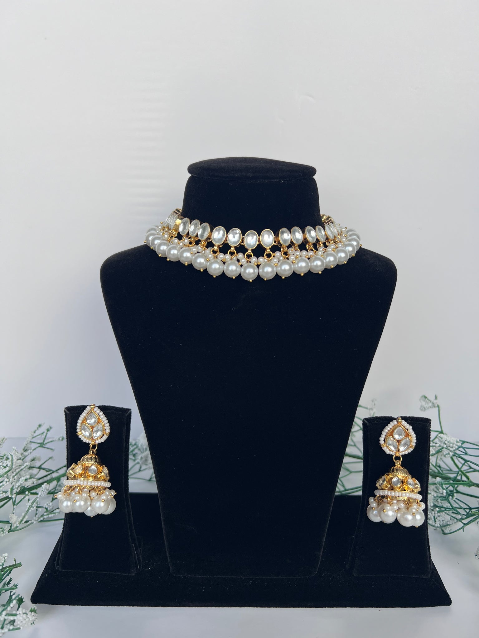 Stunning golden Pachi kundan 22k gold plated necklace set with lightweight jhumki earrings