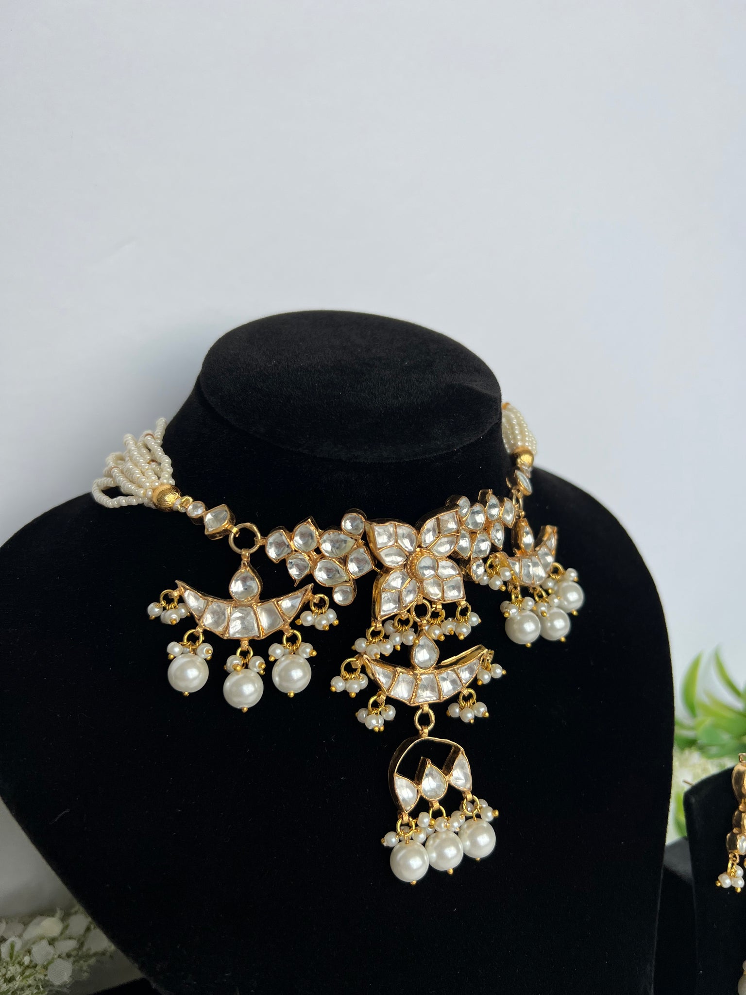 Beautiful pachi kundan 24K gold plated choker set comes with stunning jhumki earrings