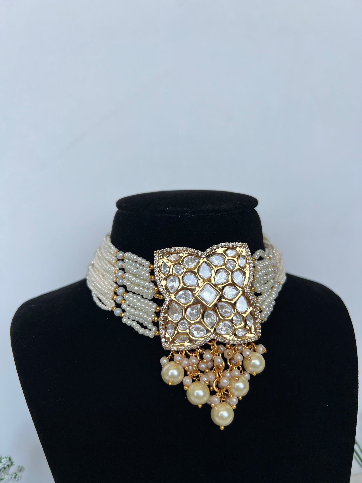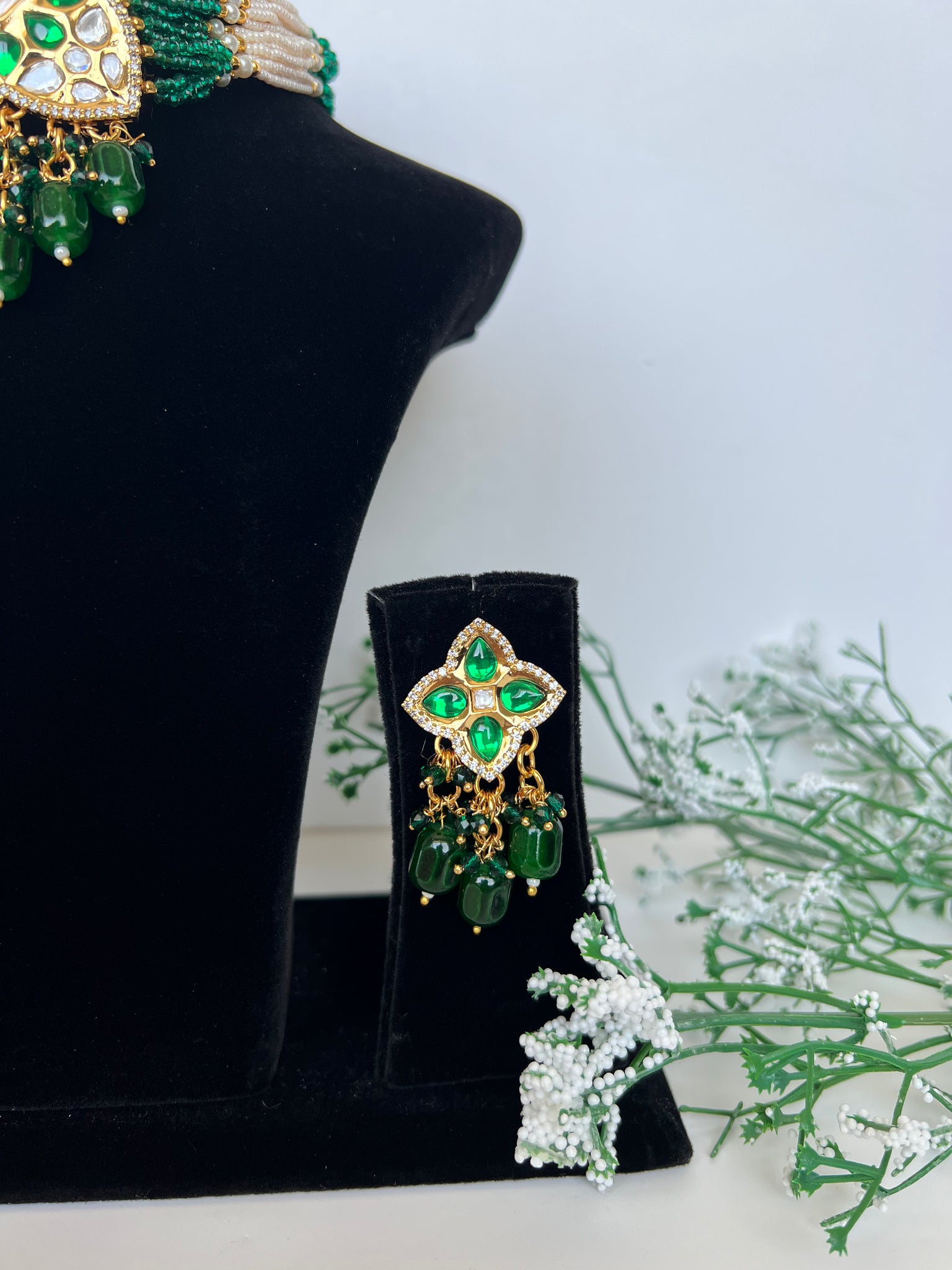 A stunning Tiyani kundan choker with earrings. Comes in 3 colours! Mint green, gold and forest green