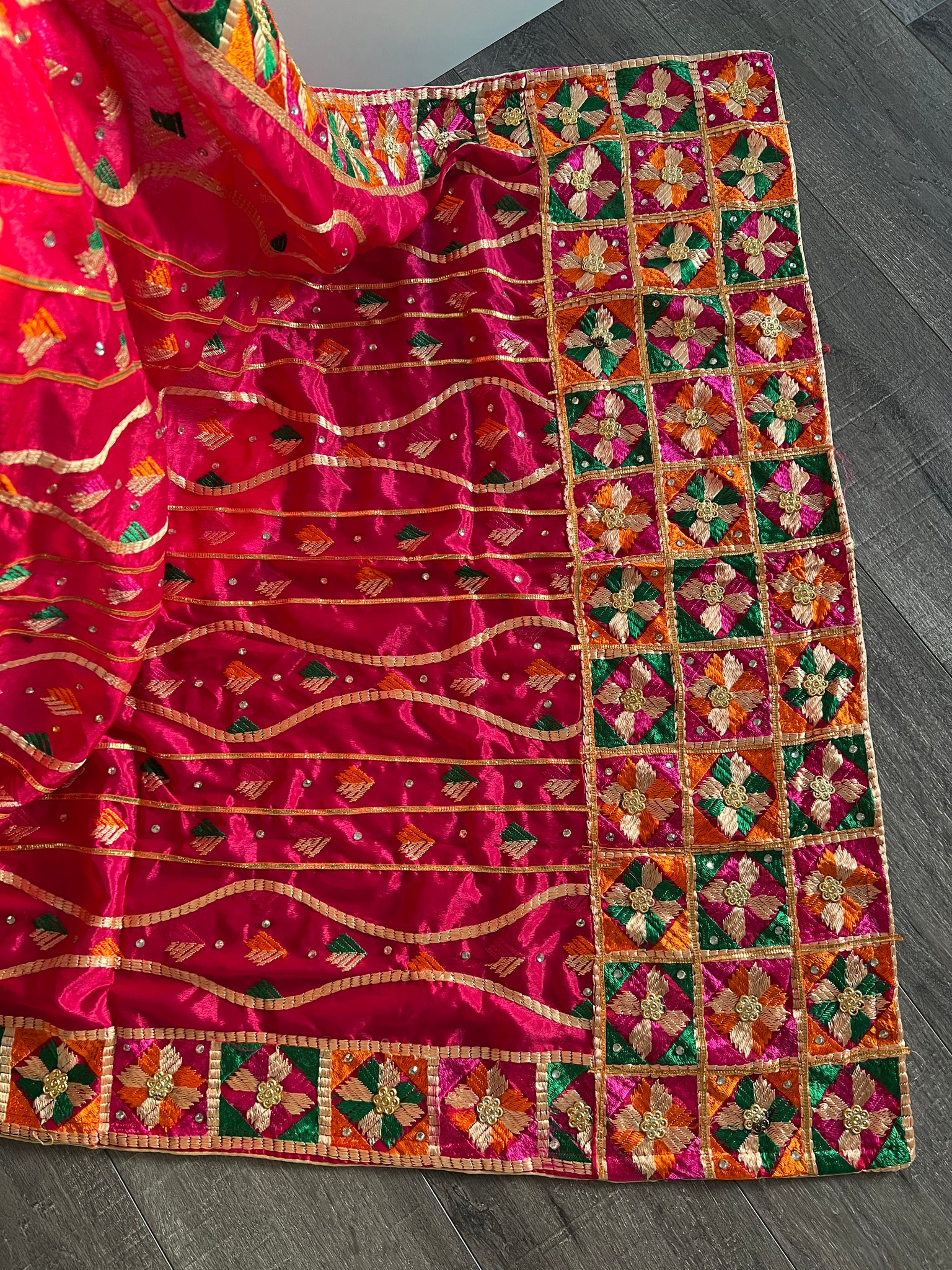 A beautiful chinnon gota work phulkari dupatta with fancy boarder
