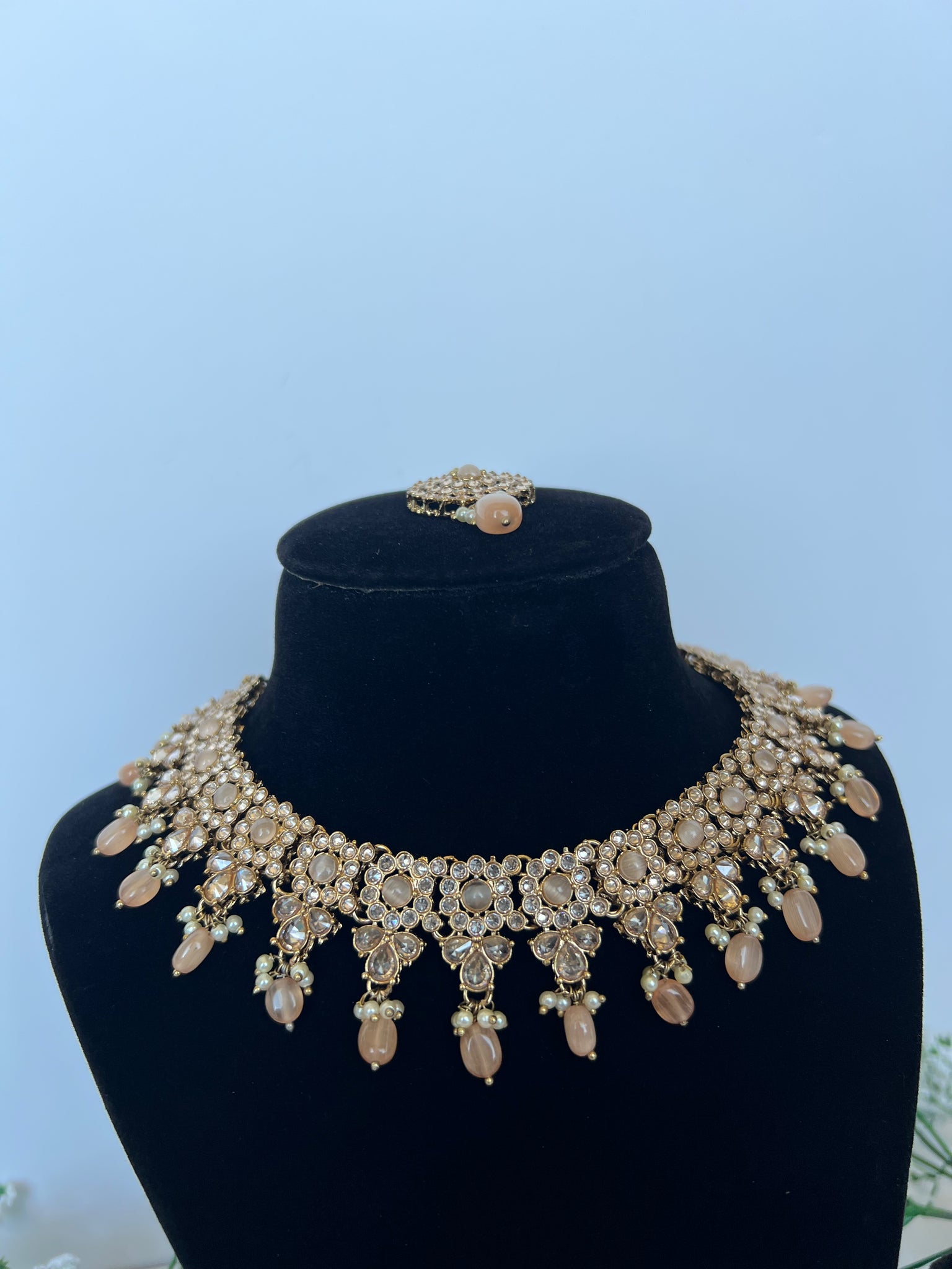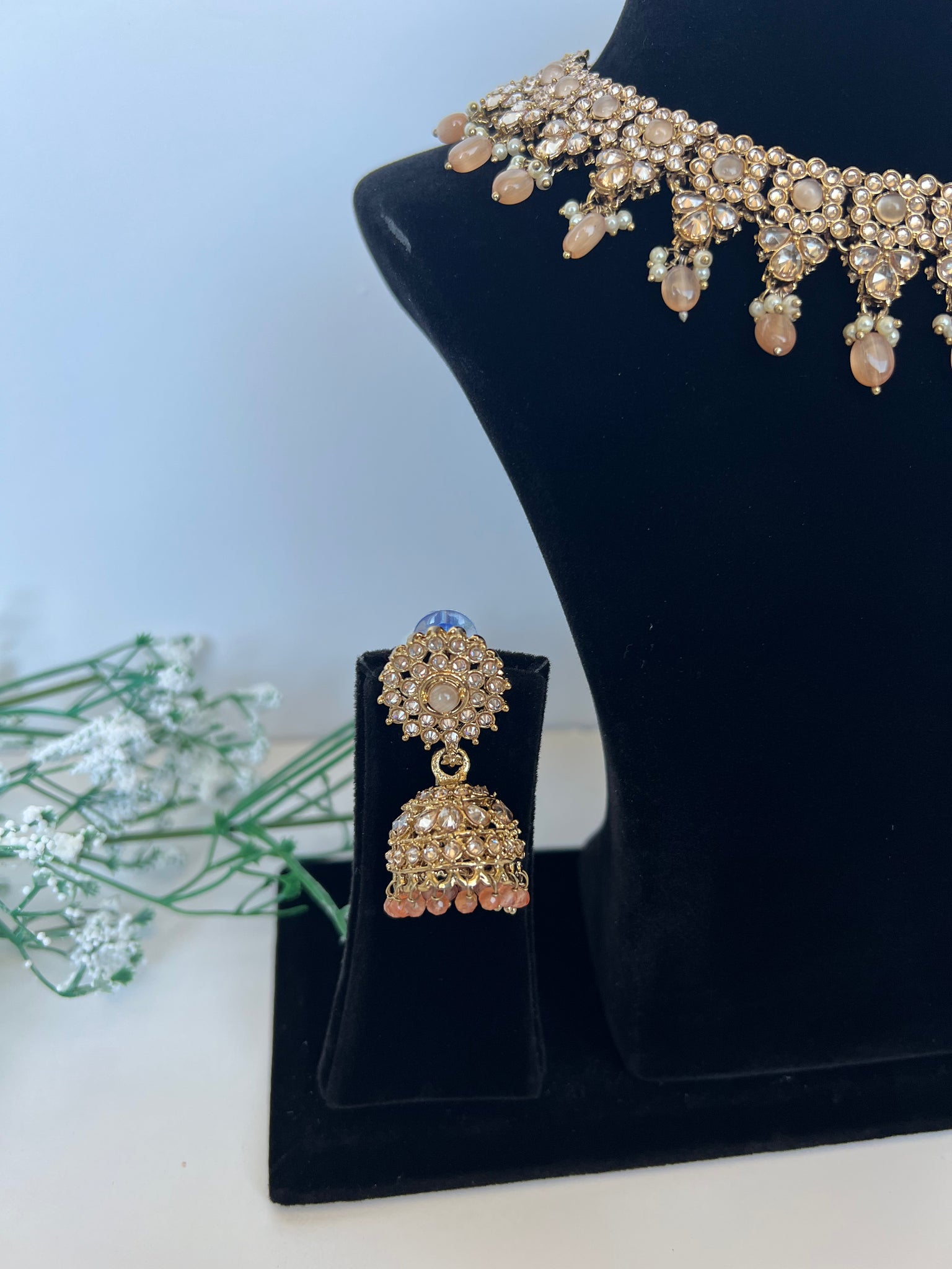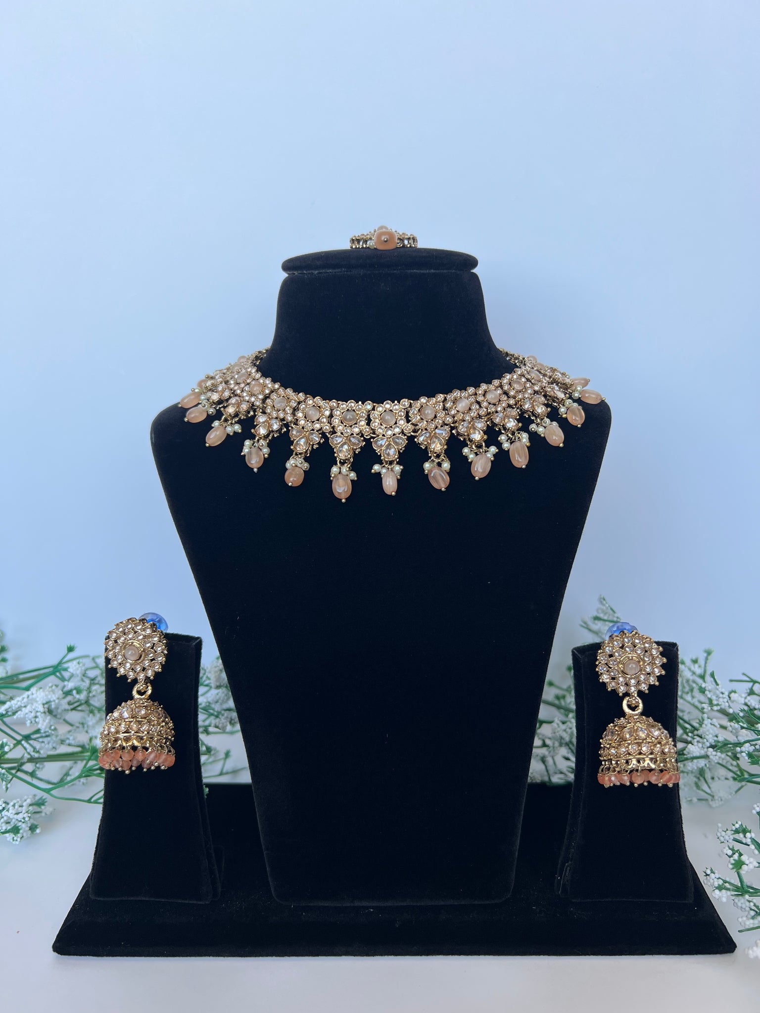 Peach necklace set with jhumki tikka