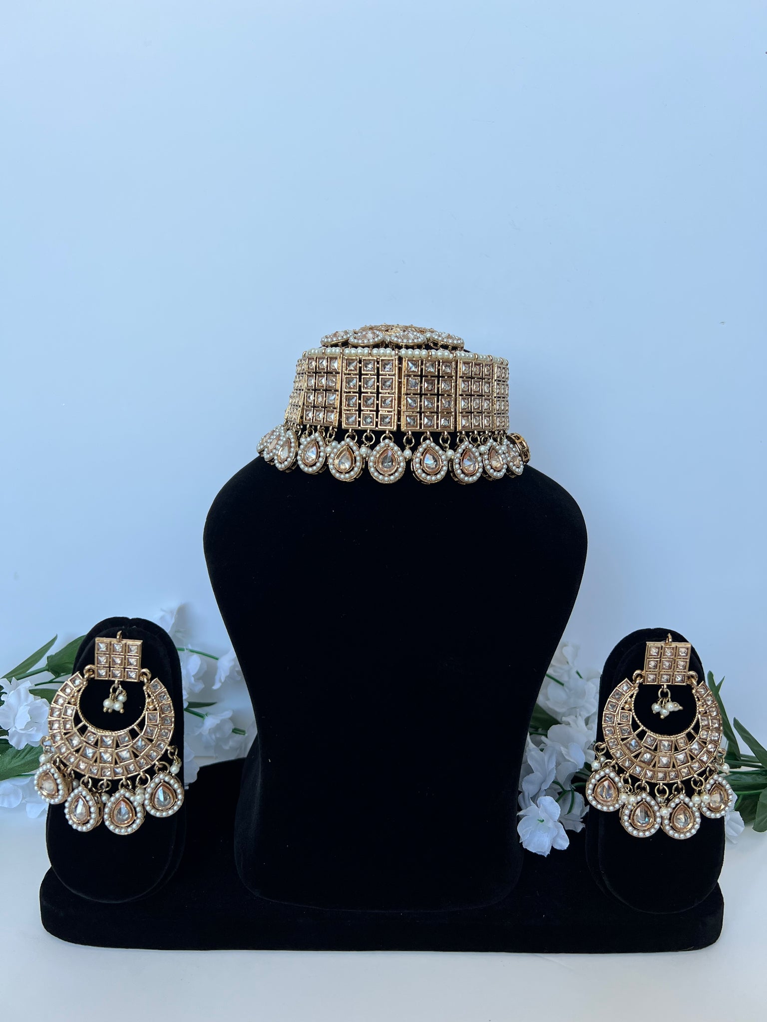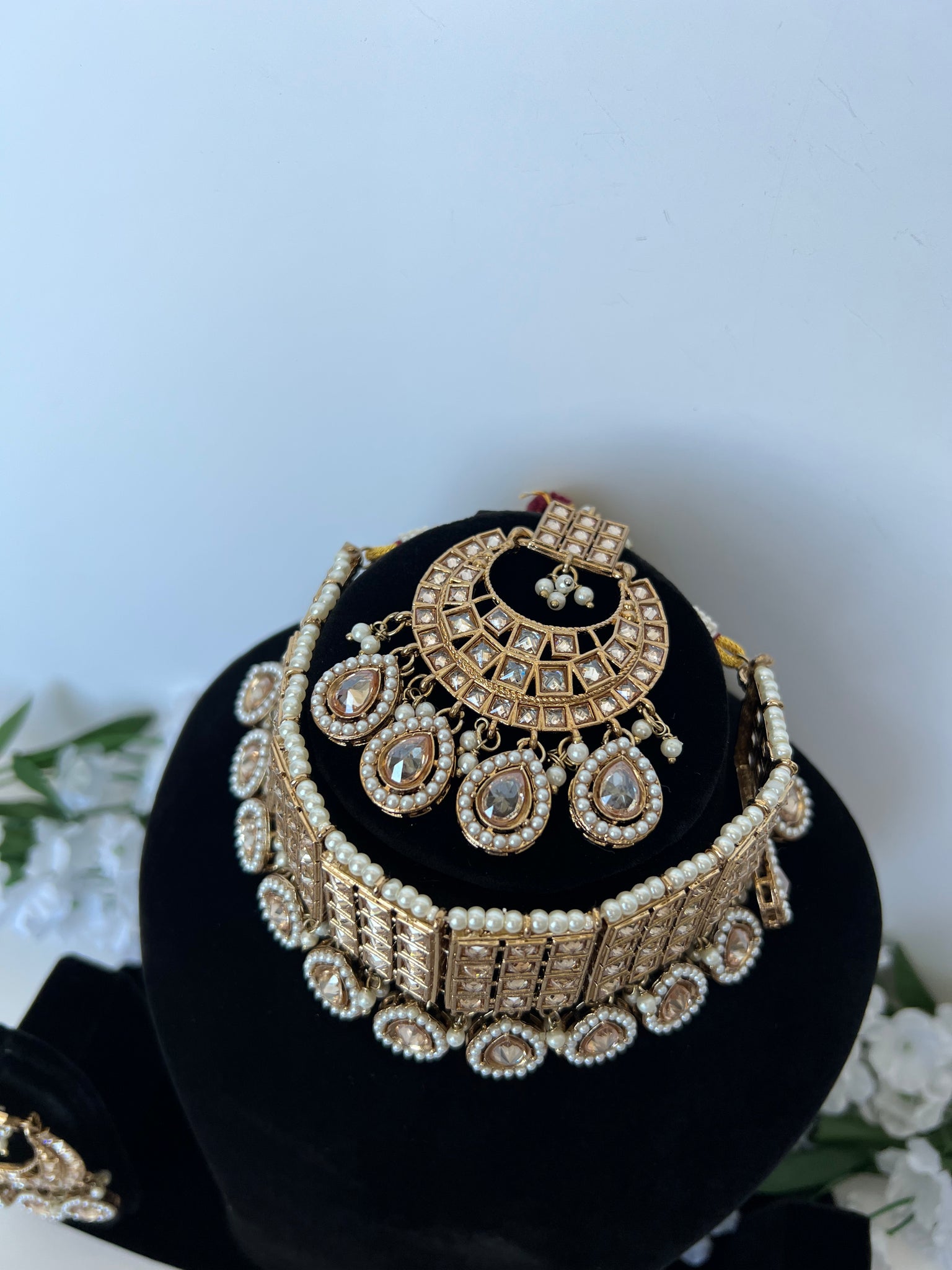 Beautiful flexible choker set with earrings and tikka
