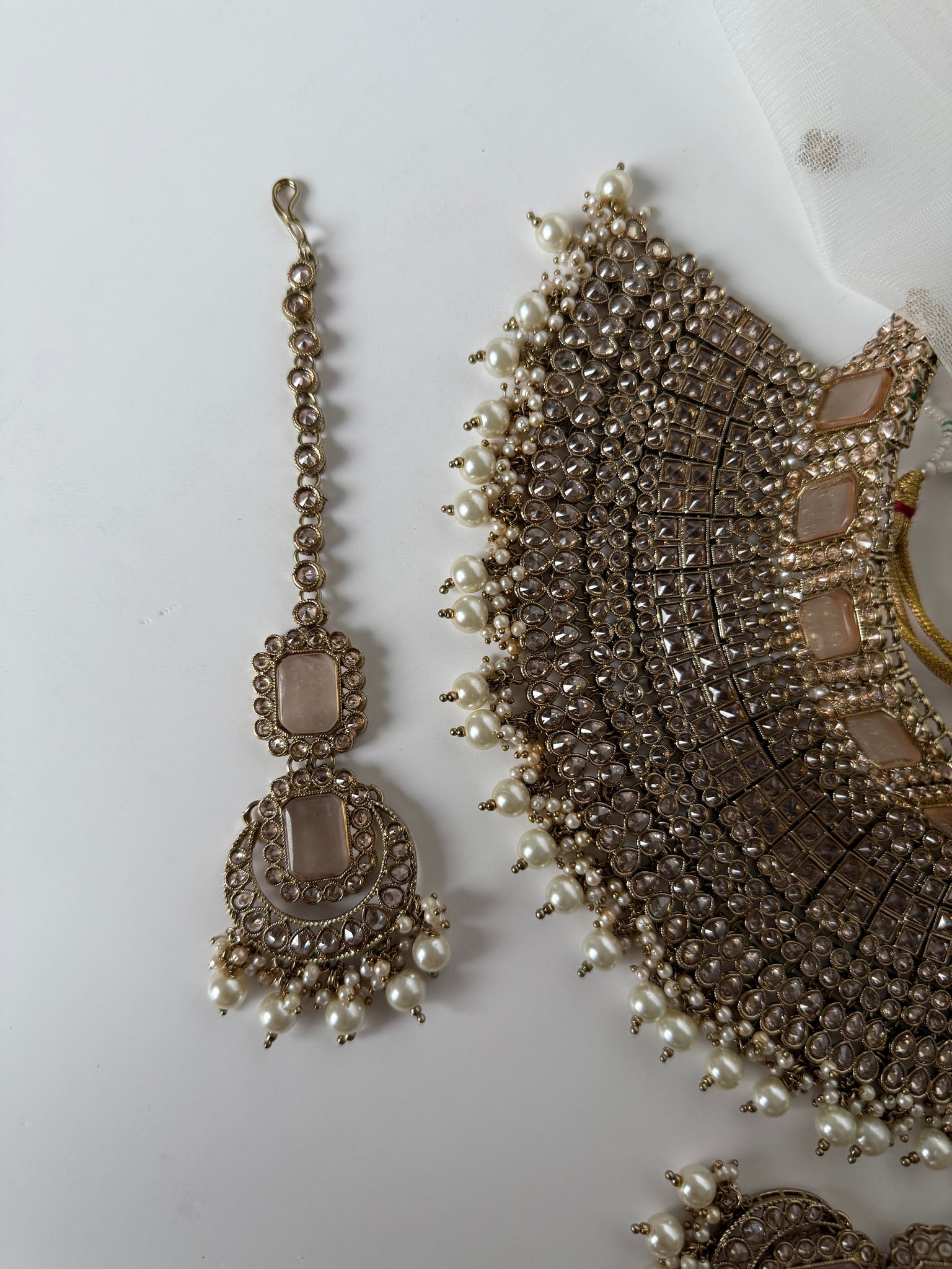 Gorgeous and stunning golden bridal set with earrings and tikka