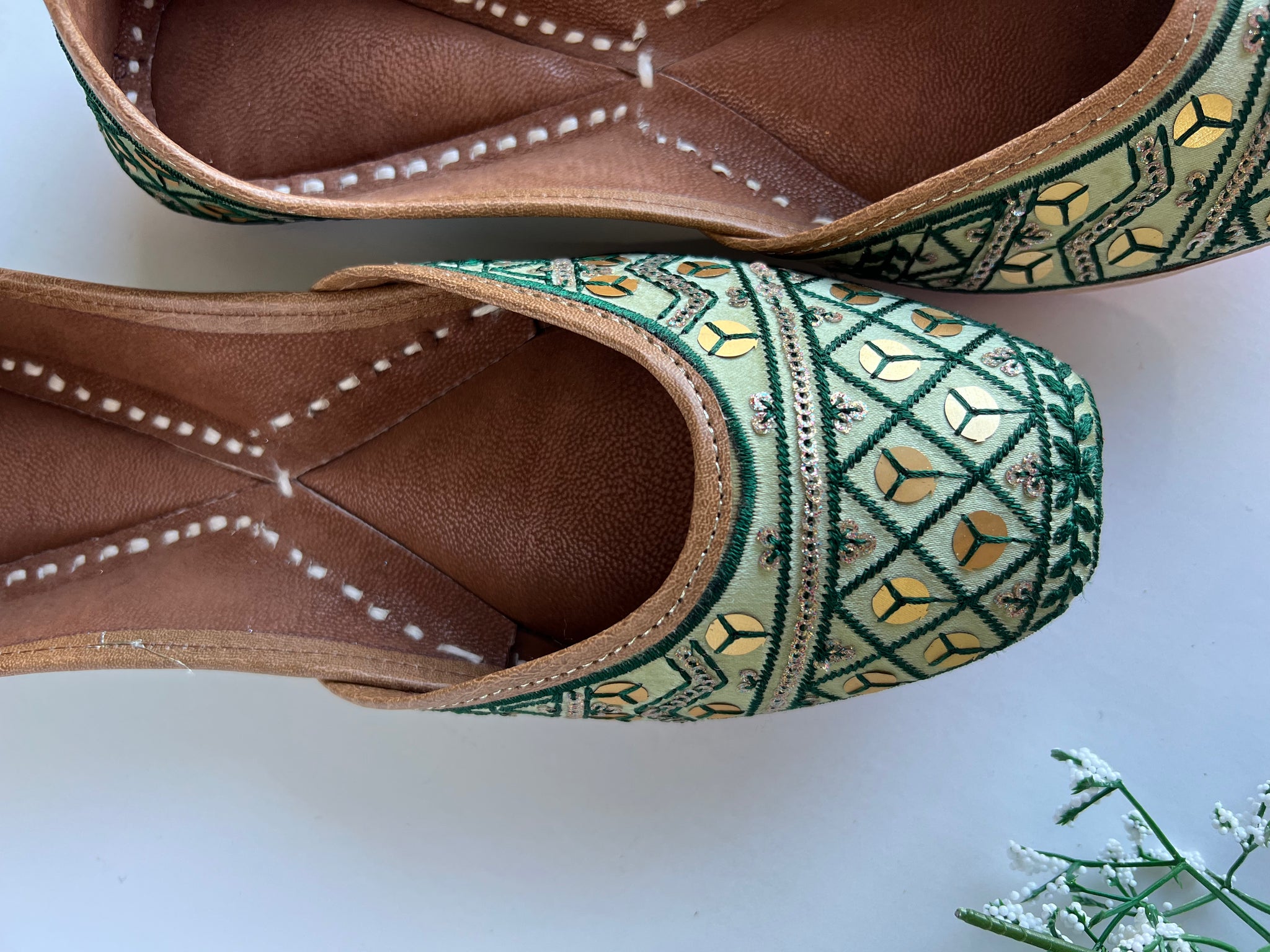 • Load image into Gallery viewer, Green Threadwork Jutti