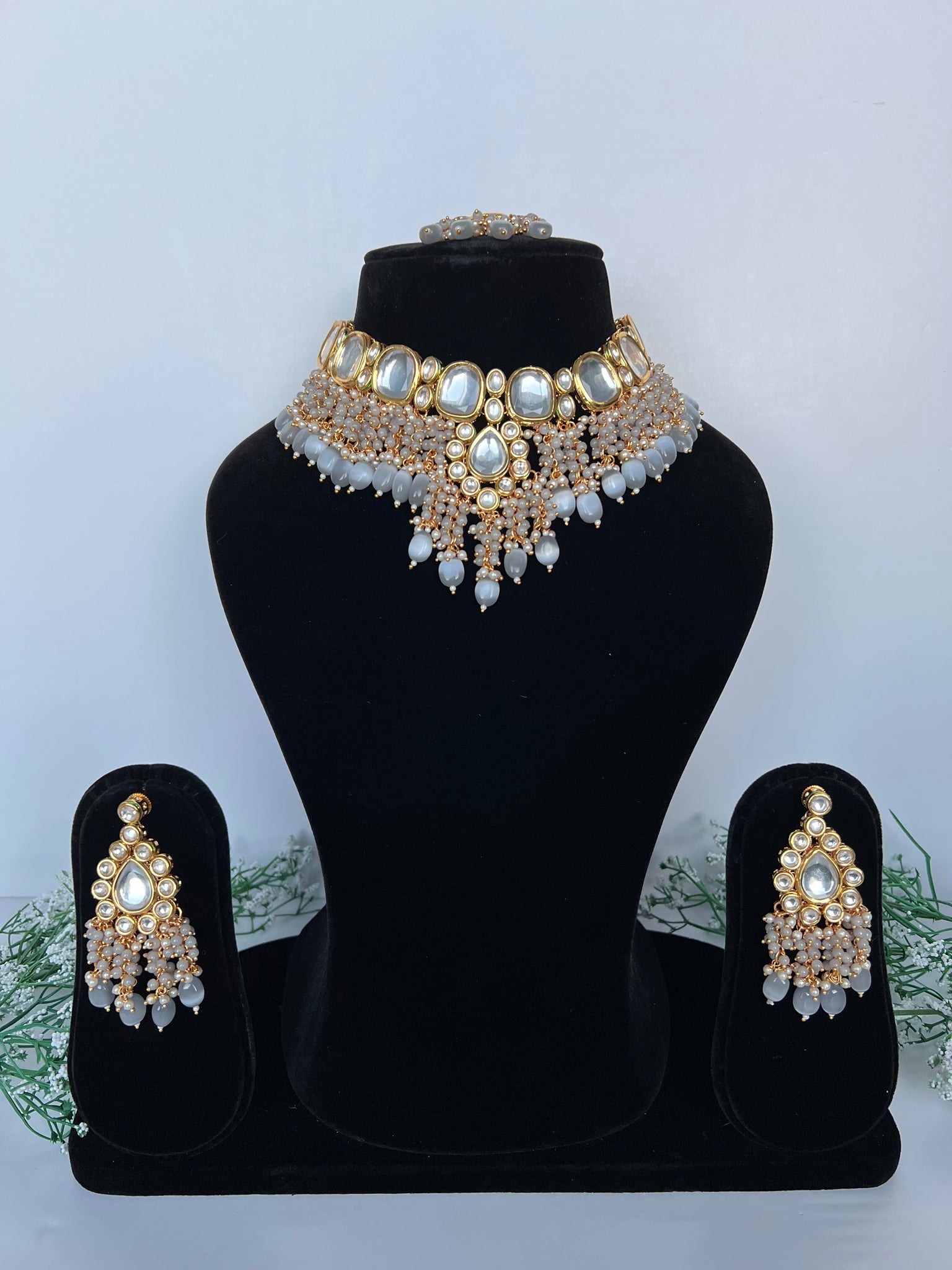 Grey Kundan Set