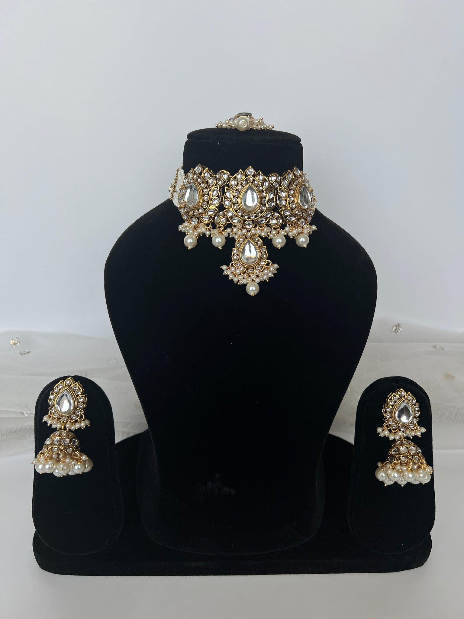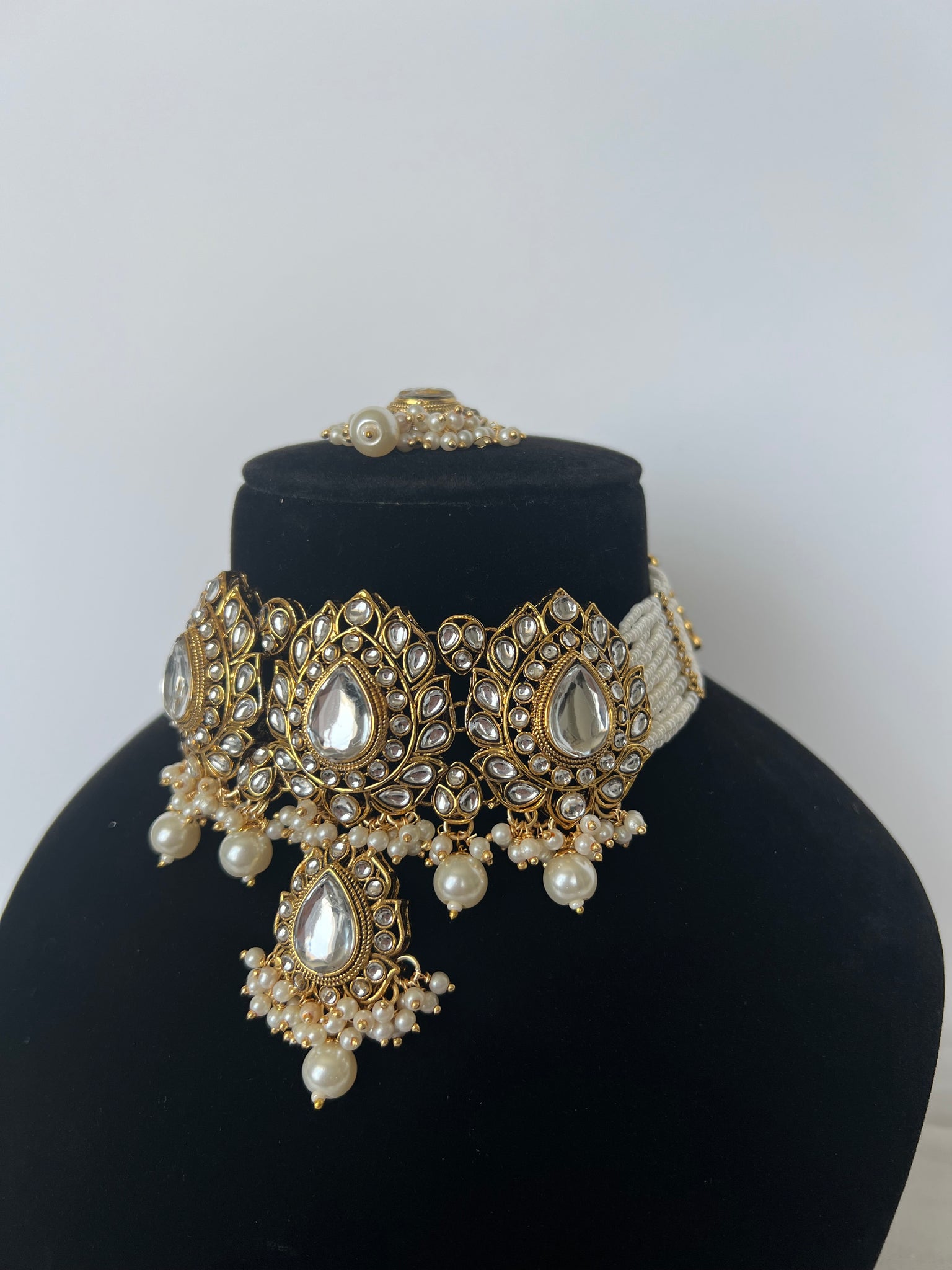 Beautiful white kundan choker with earrings and tikka