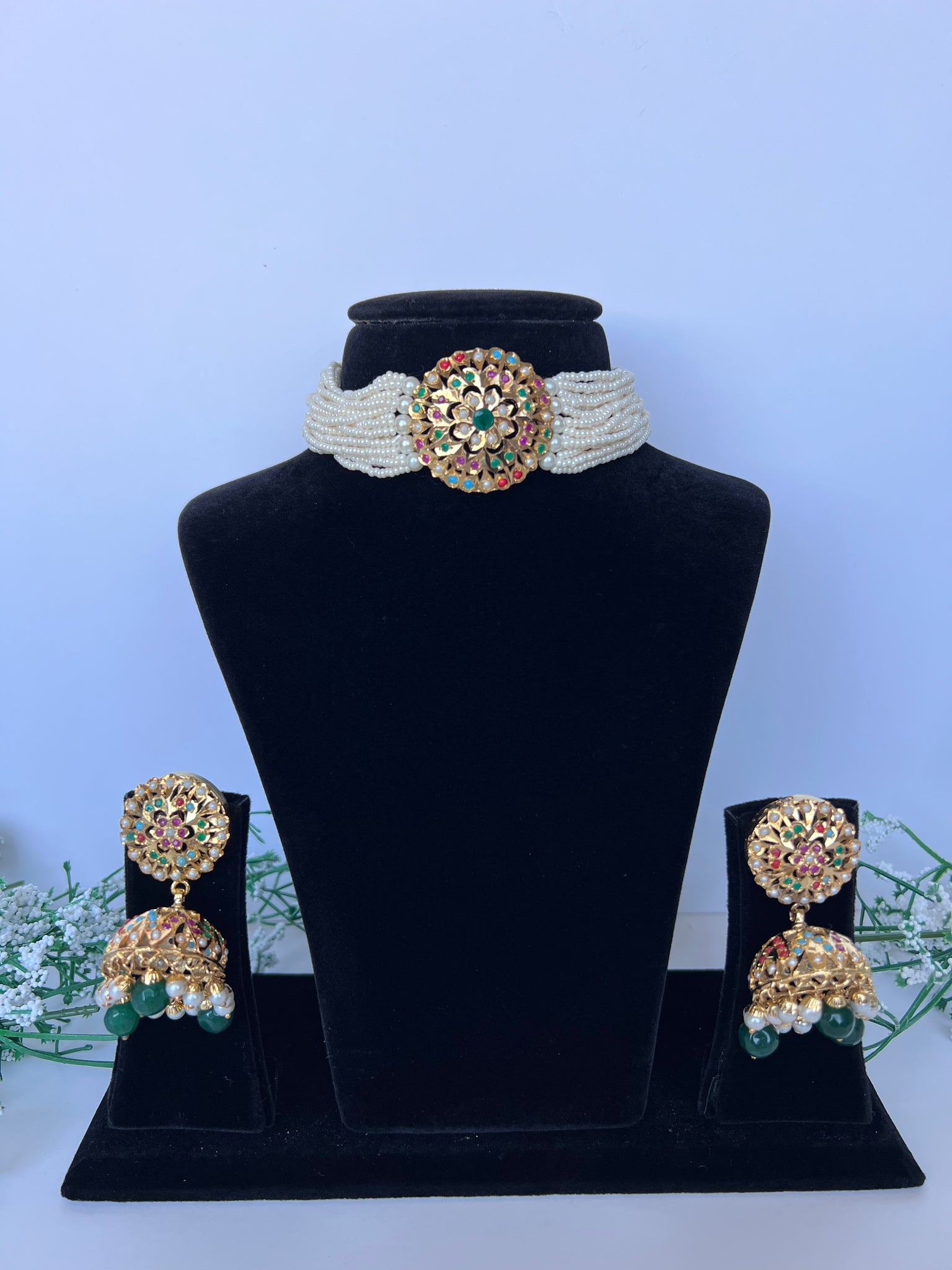 Jardau 1 gram gold plated choker set with jhumke, a stunning finish