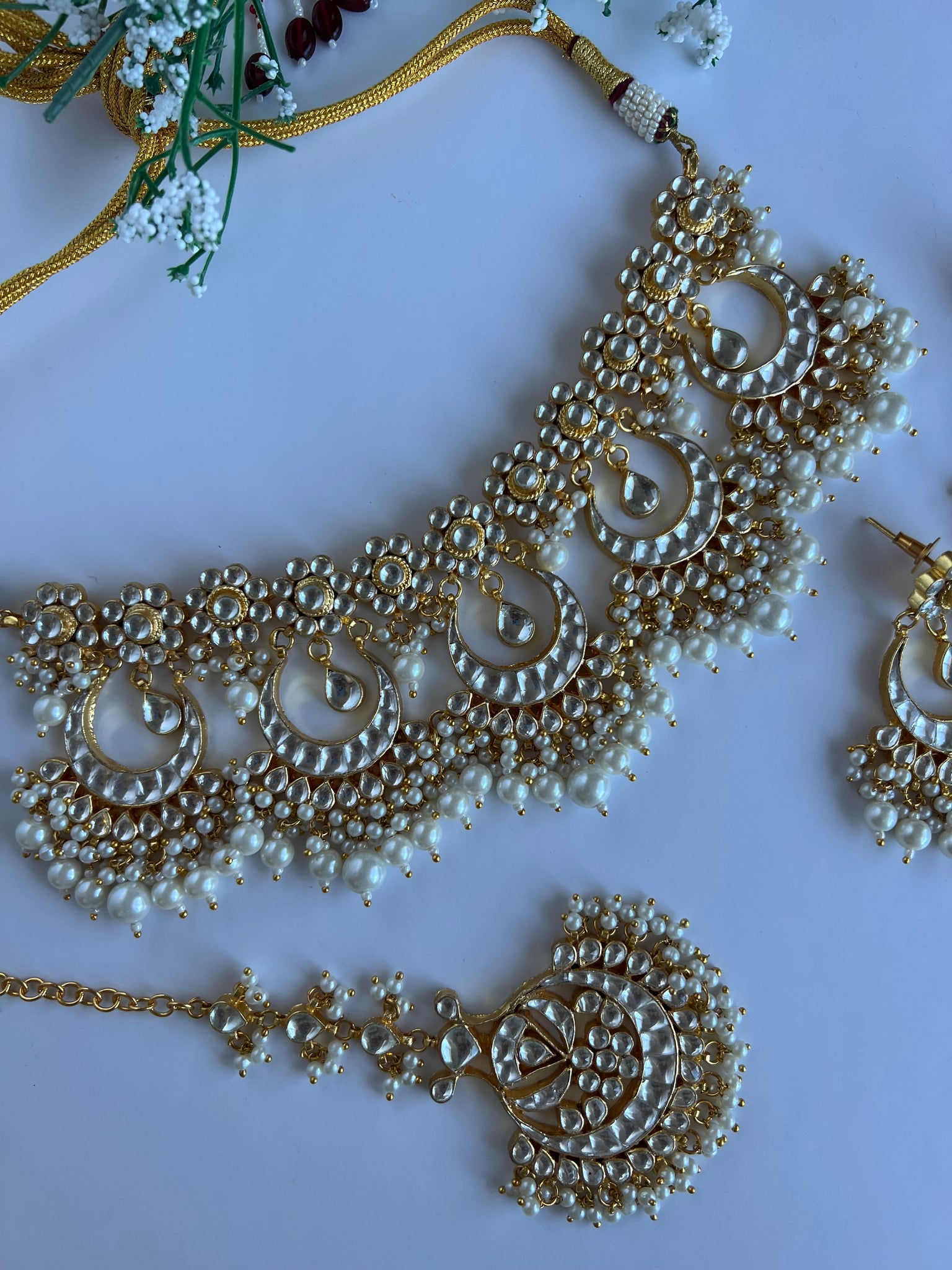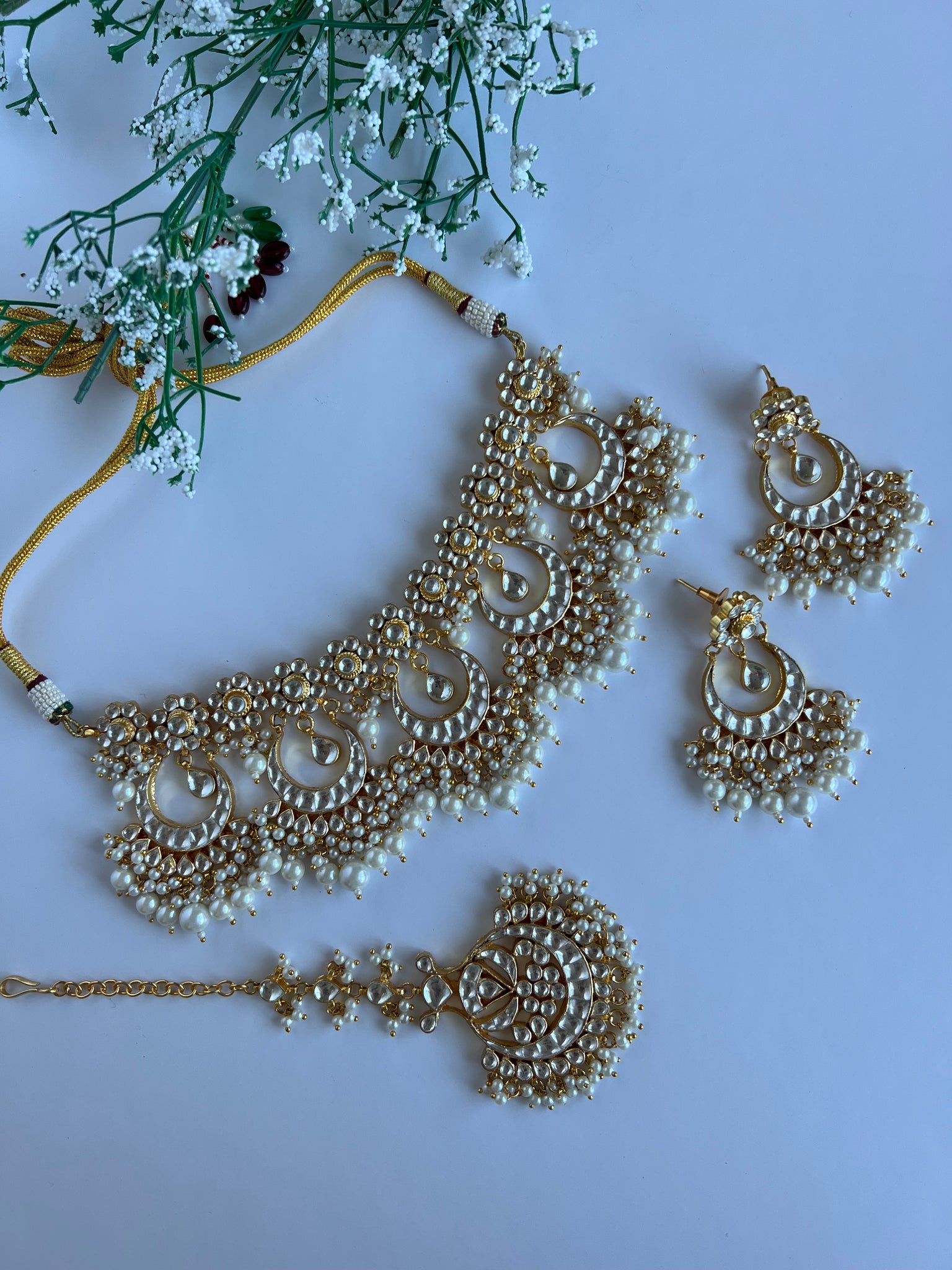 Lockets Pachi kundan necklace set with beautiful earrings and tikka. In 22K gold plated kundan