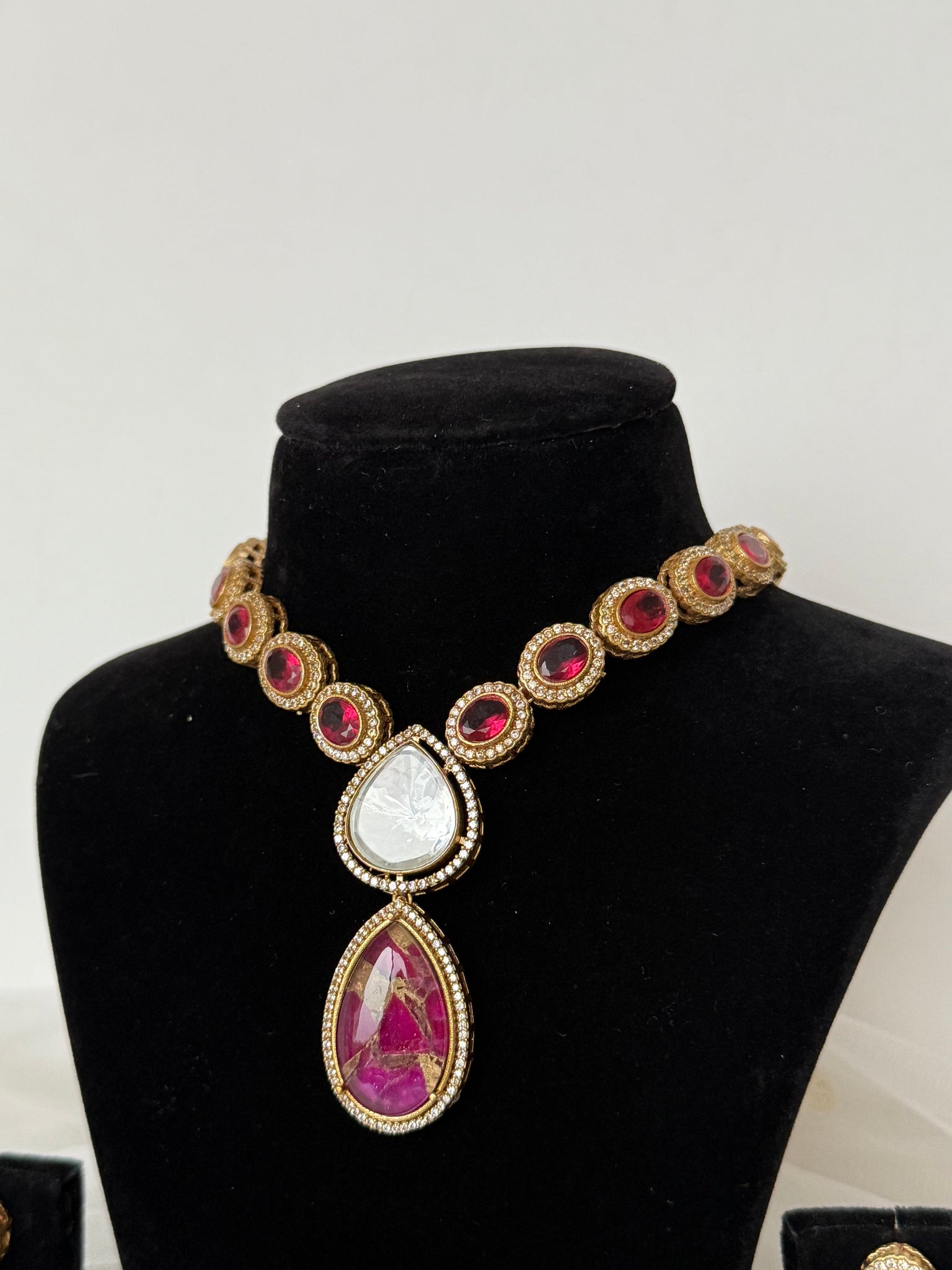 Gorgeous stone marble necklace set with a drop, and earrings. Modern and unique available in 3 colours