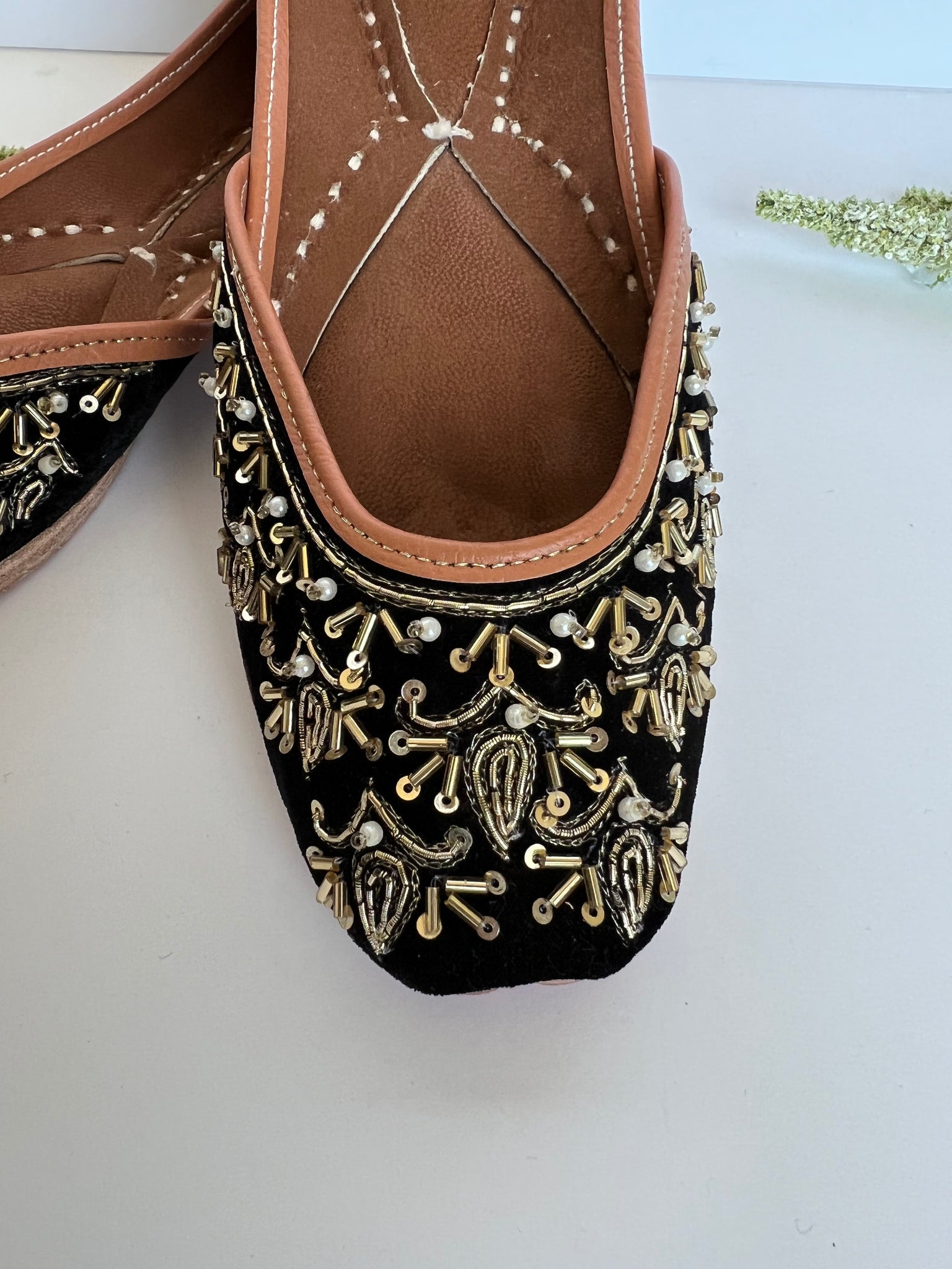 Beautiful black velvet Punjabi jutti with golden embroidery