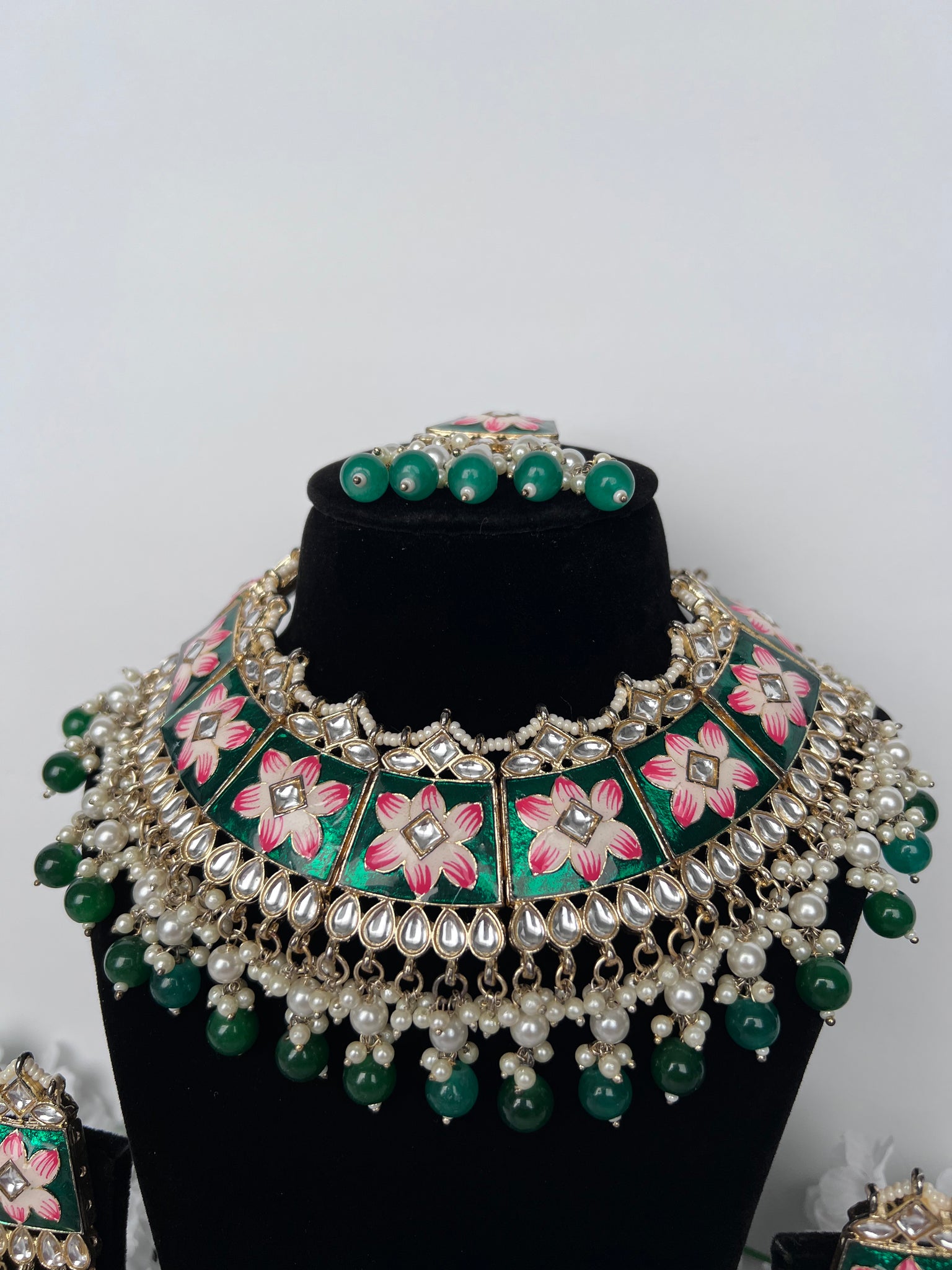 Beautiful lightweight meenakari kundan necklace set with earrings and tikka