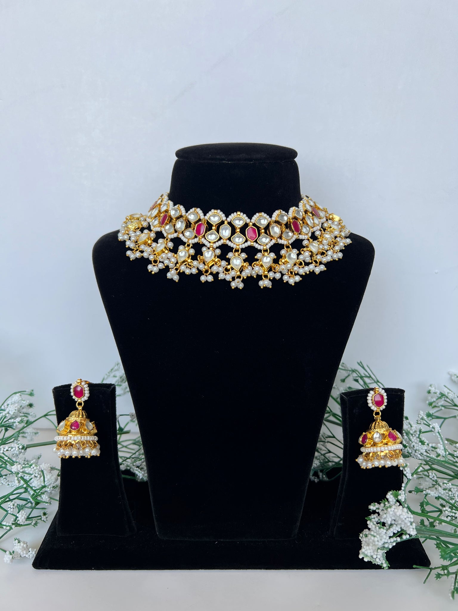 Stunning Pachi kundan maroon magenta set with mini jhumki