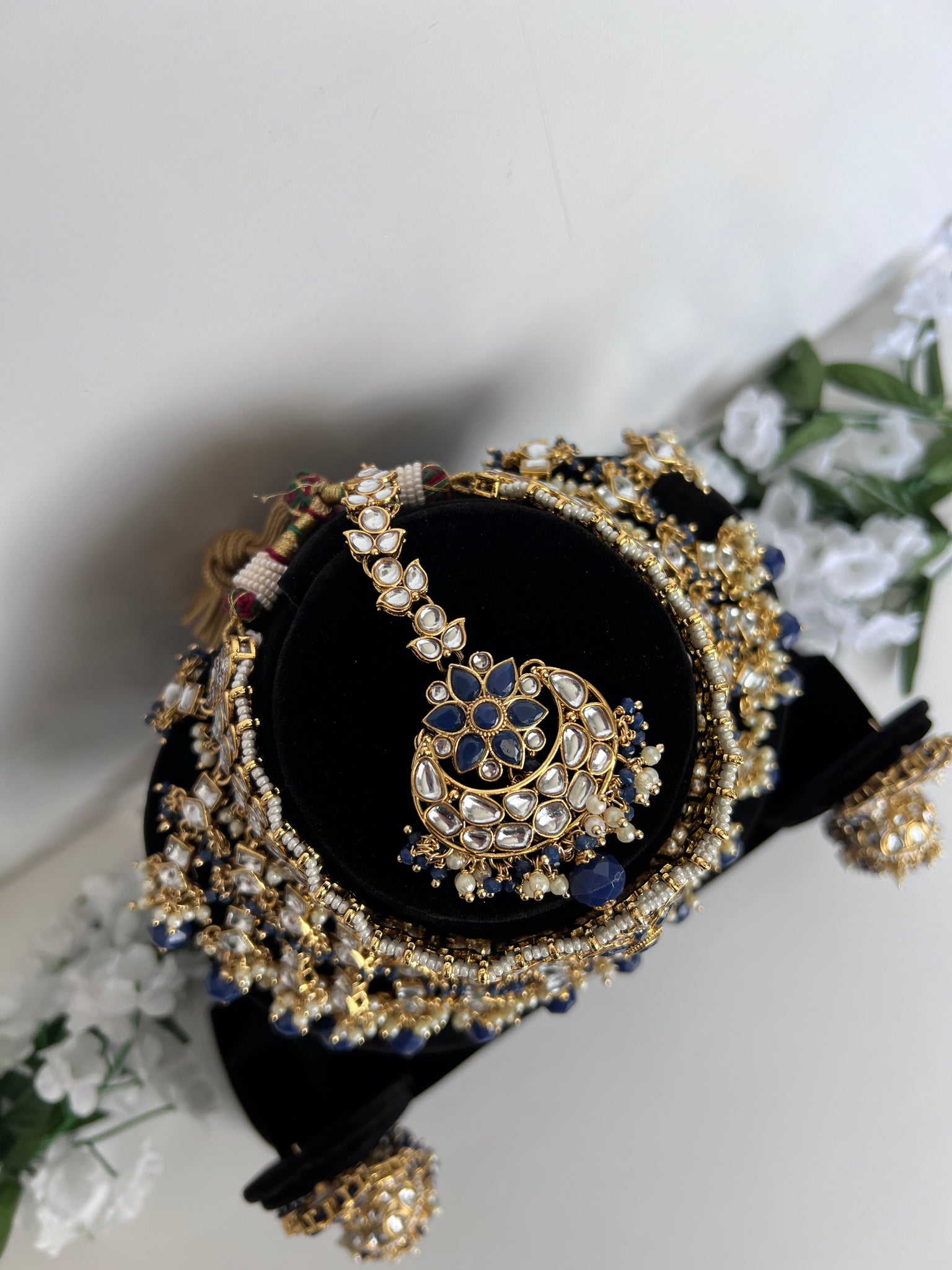 Stunning navy kundan choker with jhumki and tikka