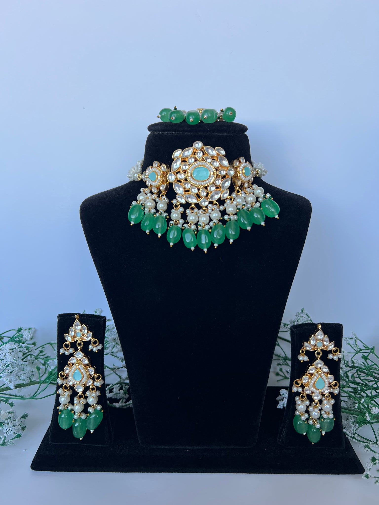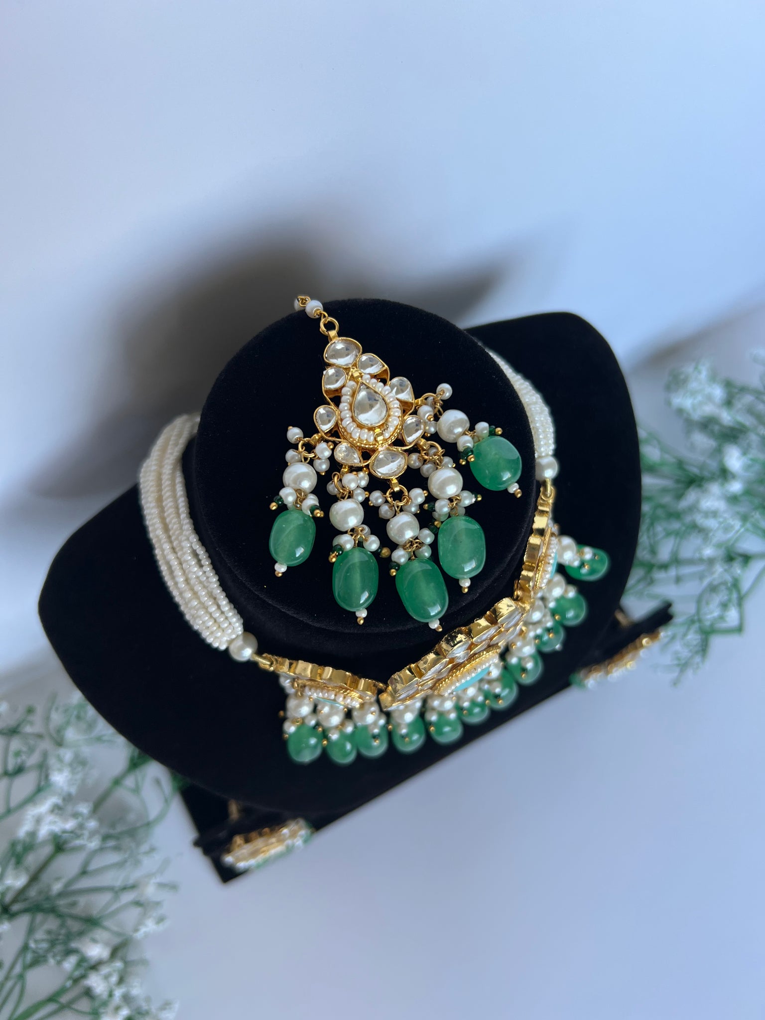 Noor Pachi kundan set with earrings and tikka, 22K gold plated beauty