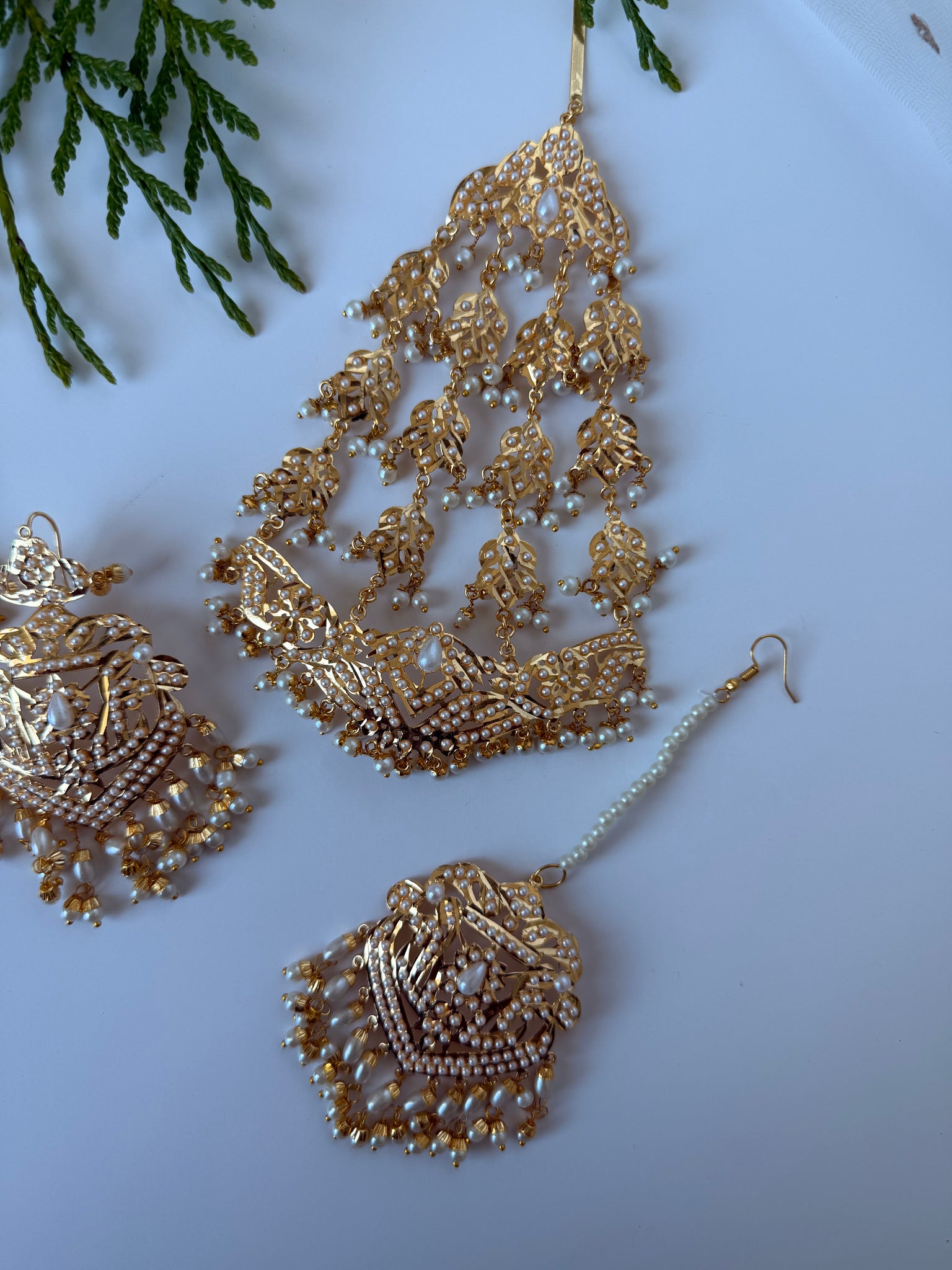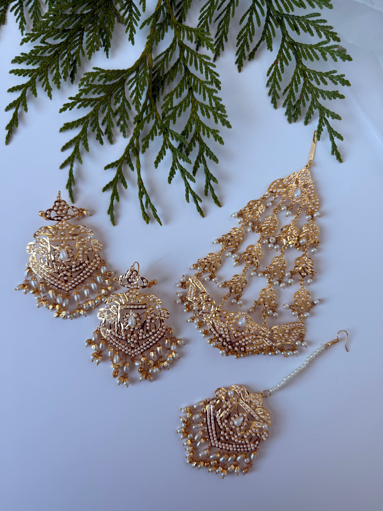 Gorgeous Pakistani jardau lightweight earrings, tikka and Jhoomer/passa