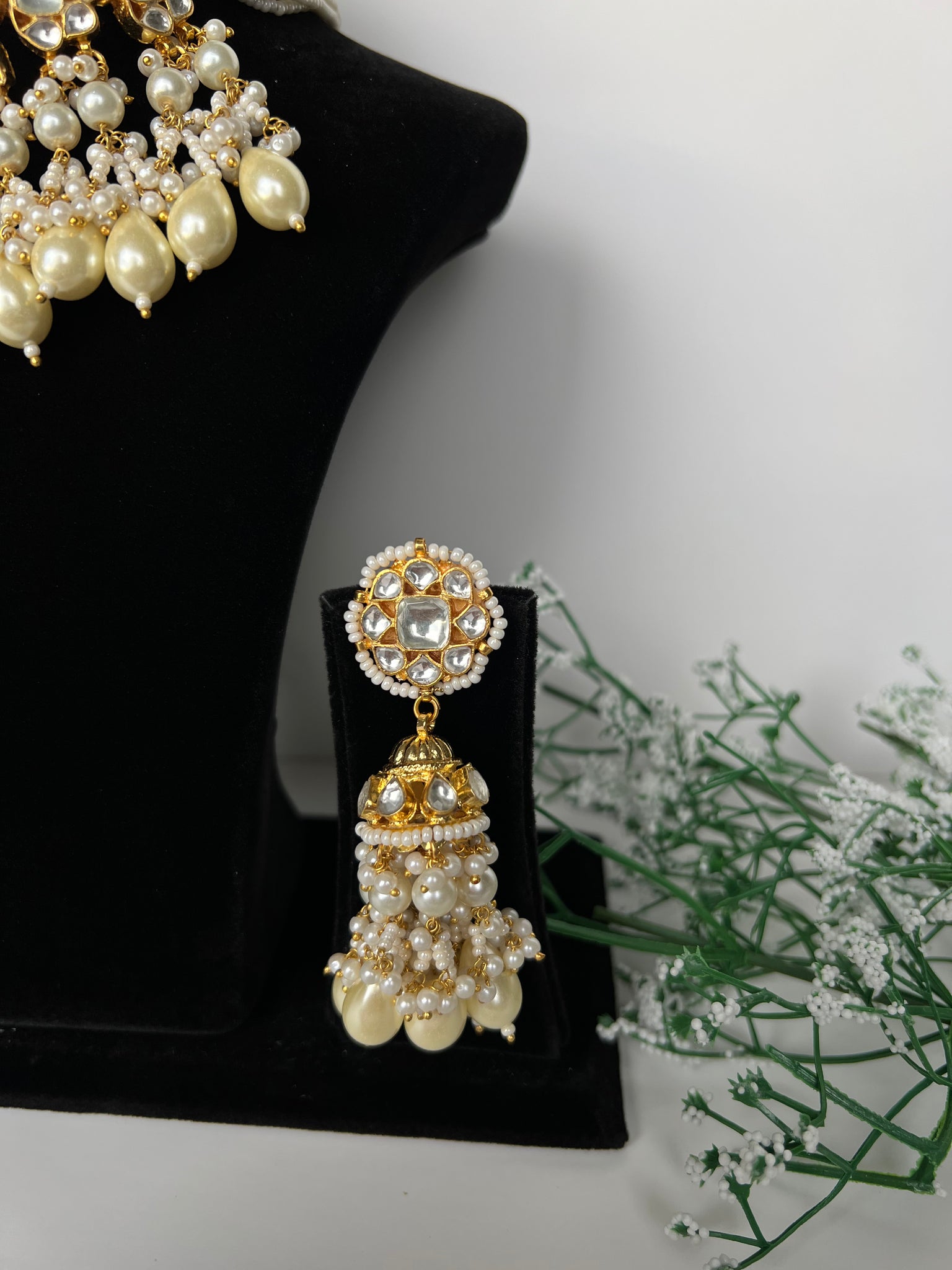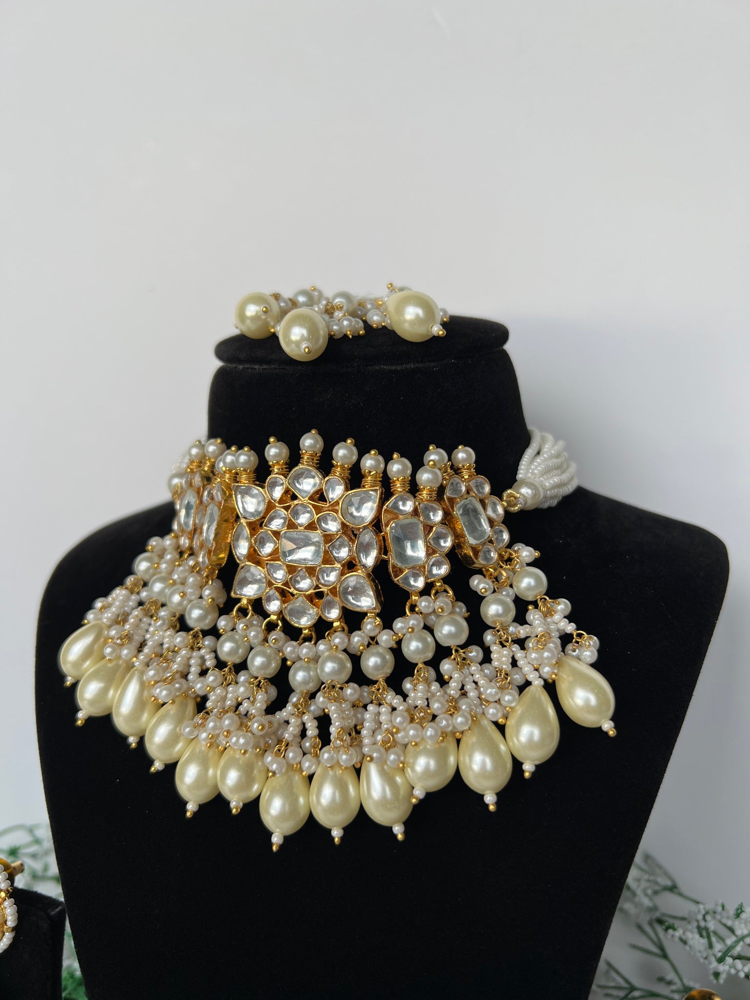 A beautiful Pachi kundan set in 22K gold plating, comes with earrings and tikka