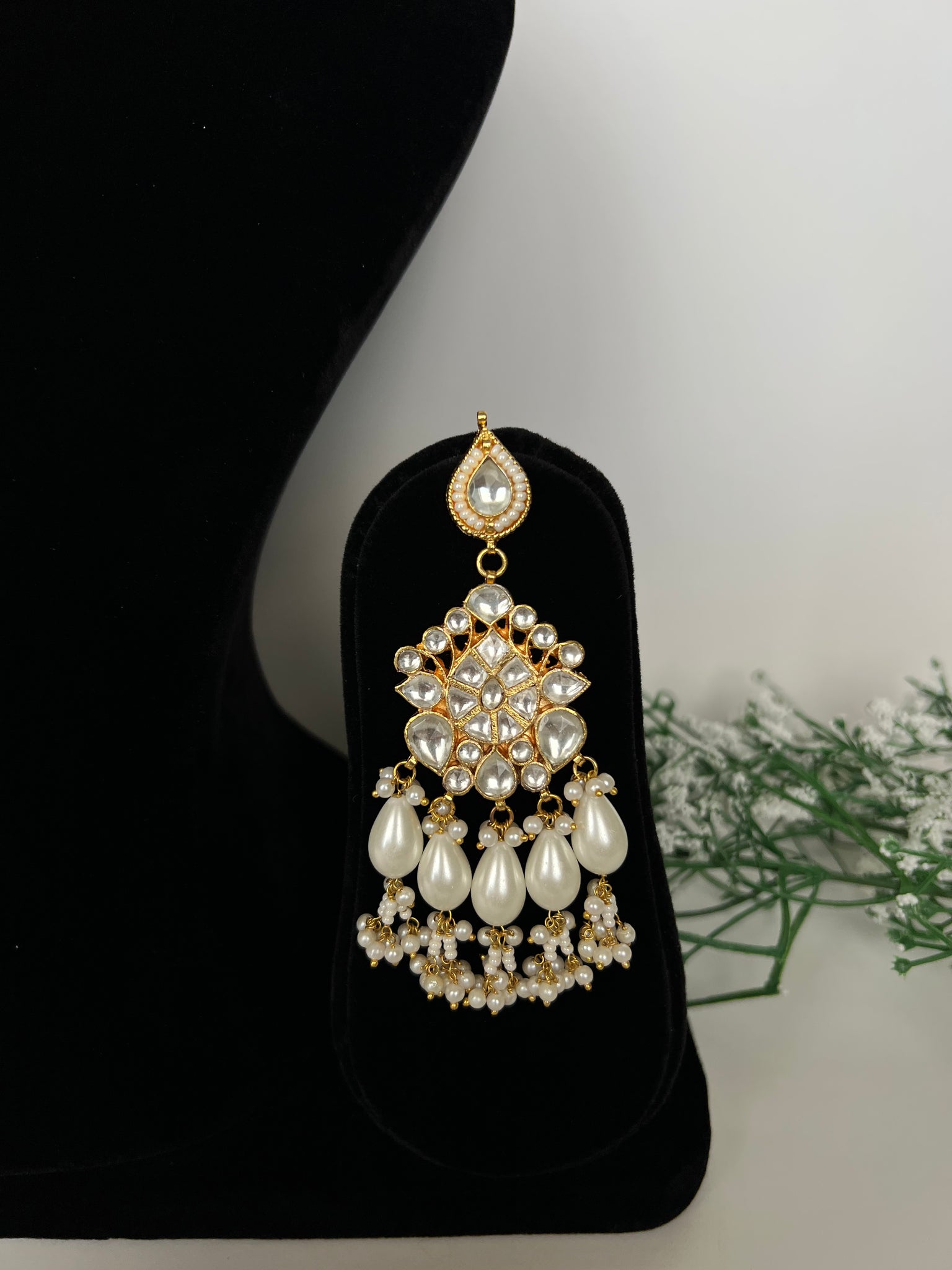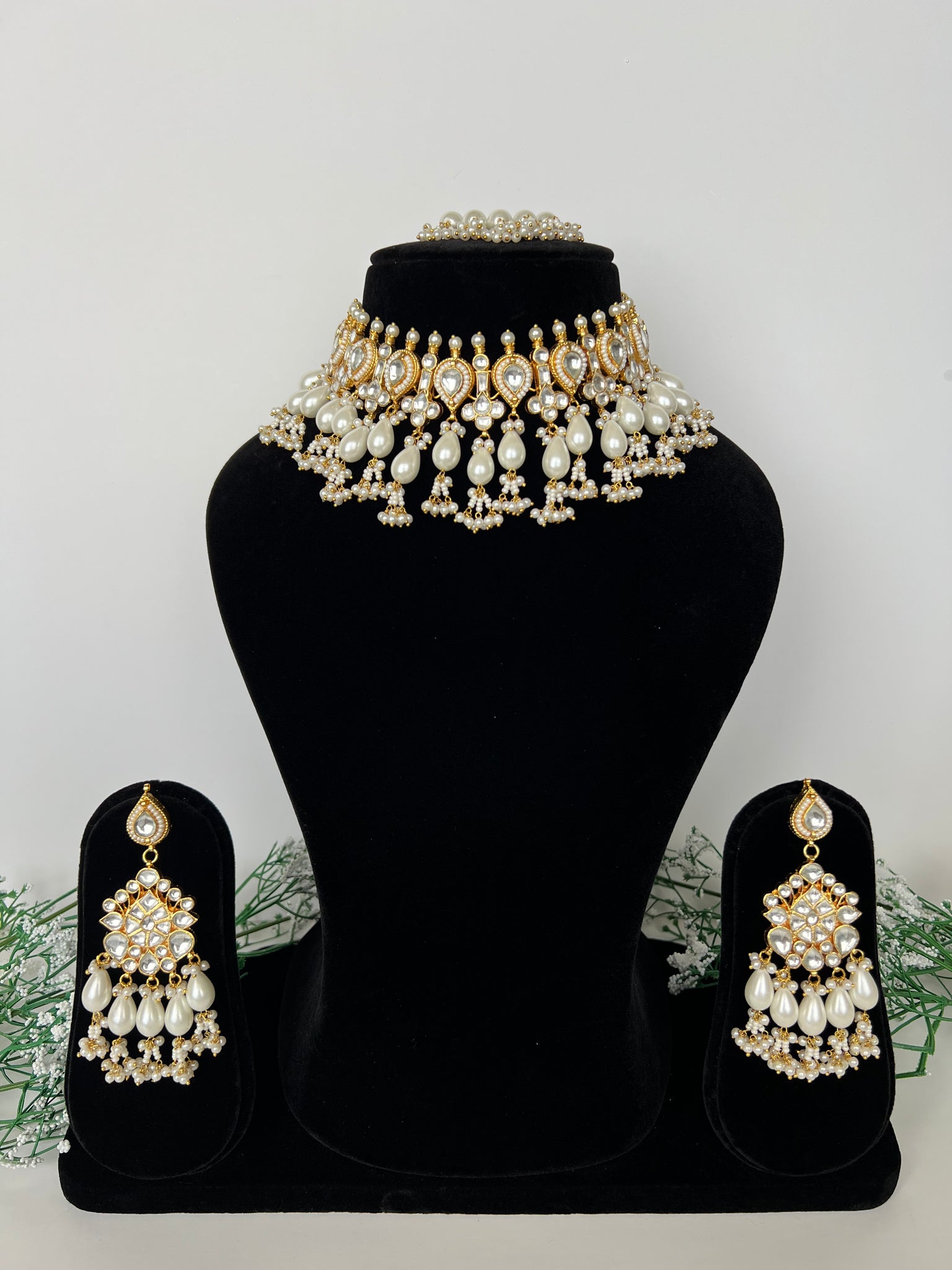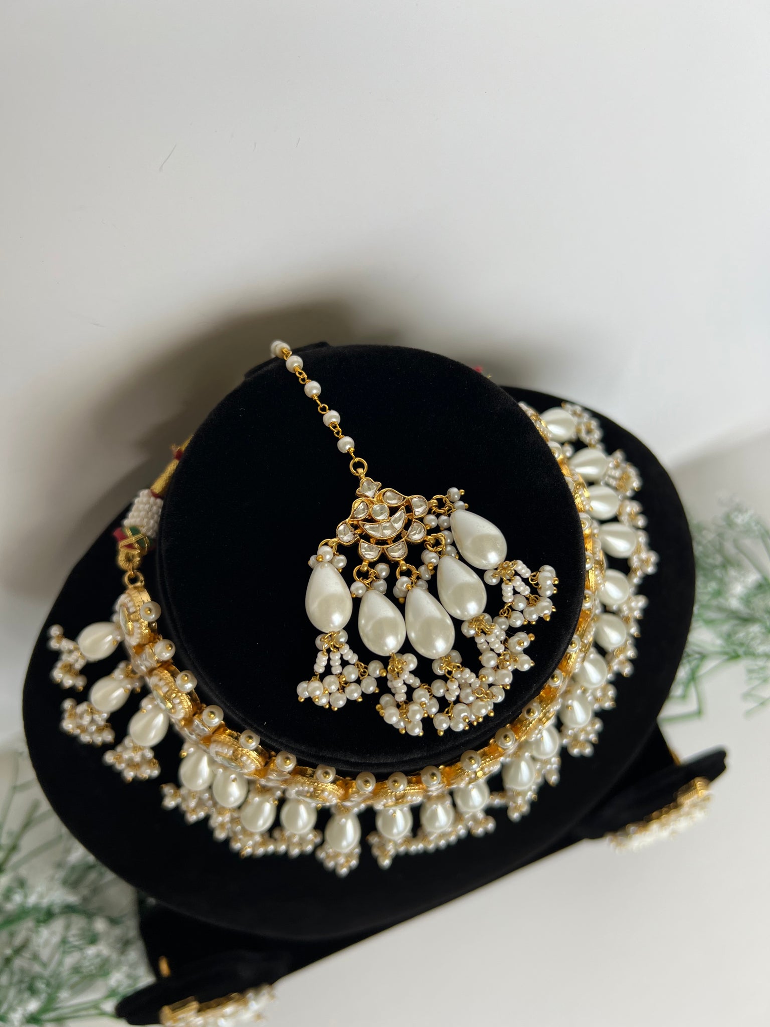 A beautiful 22k gold plated Pachi kundan necklace set with earrings and tikka