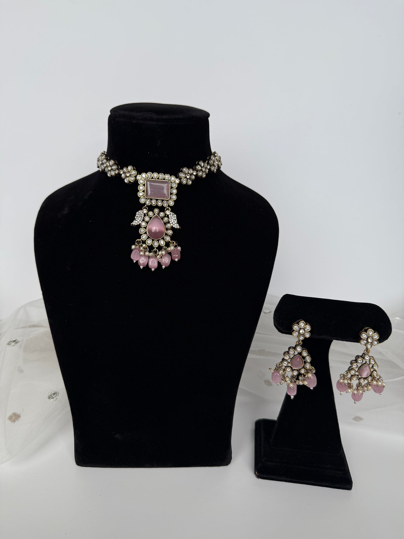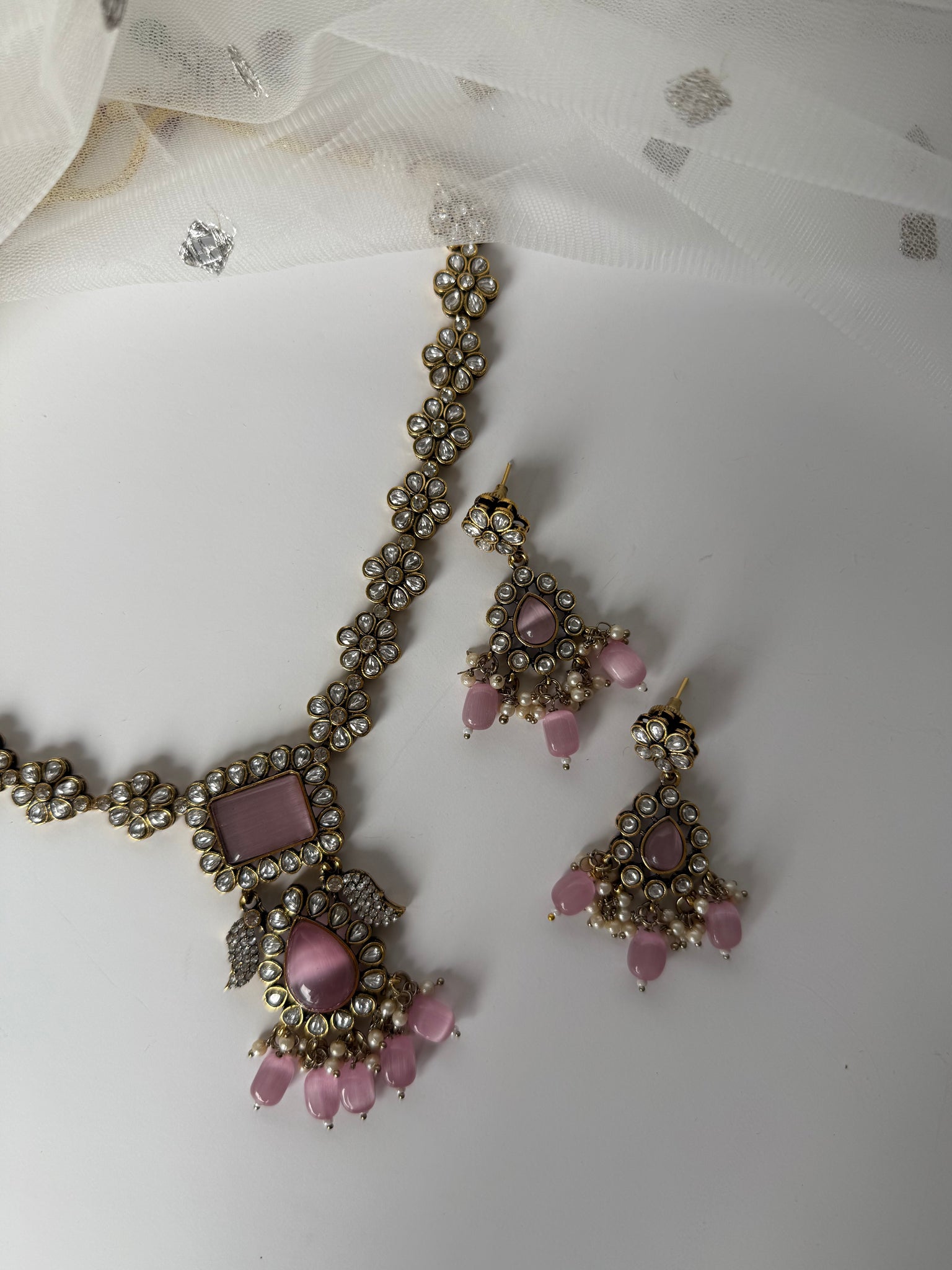 Gorgeous Amarpali necklace set can be worn higher or lower, comes with earrings