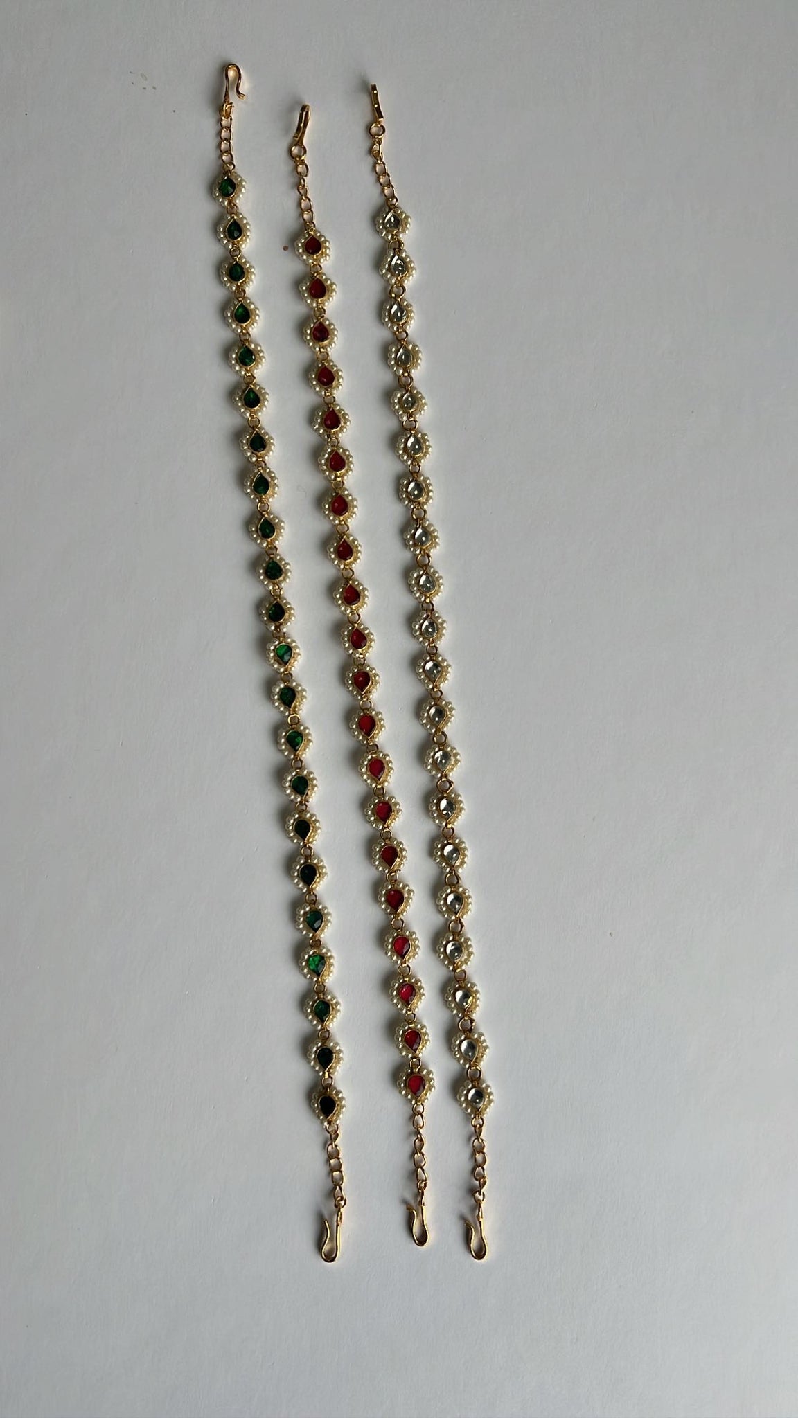 Simple pachi kundan 24K gold plated headband in 3 colours. Colours; Emerald green, ruby red, and golden white