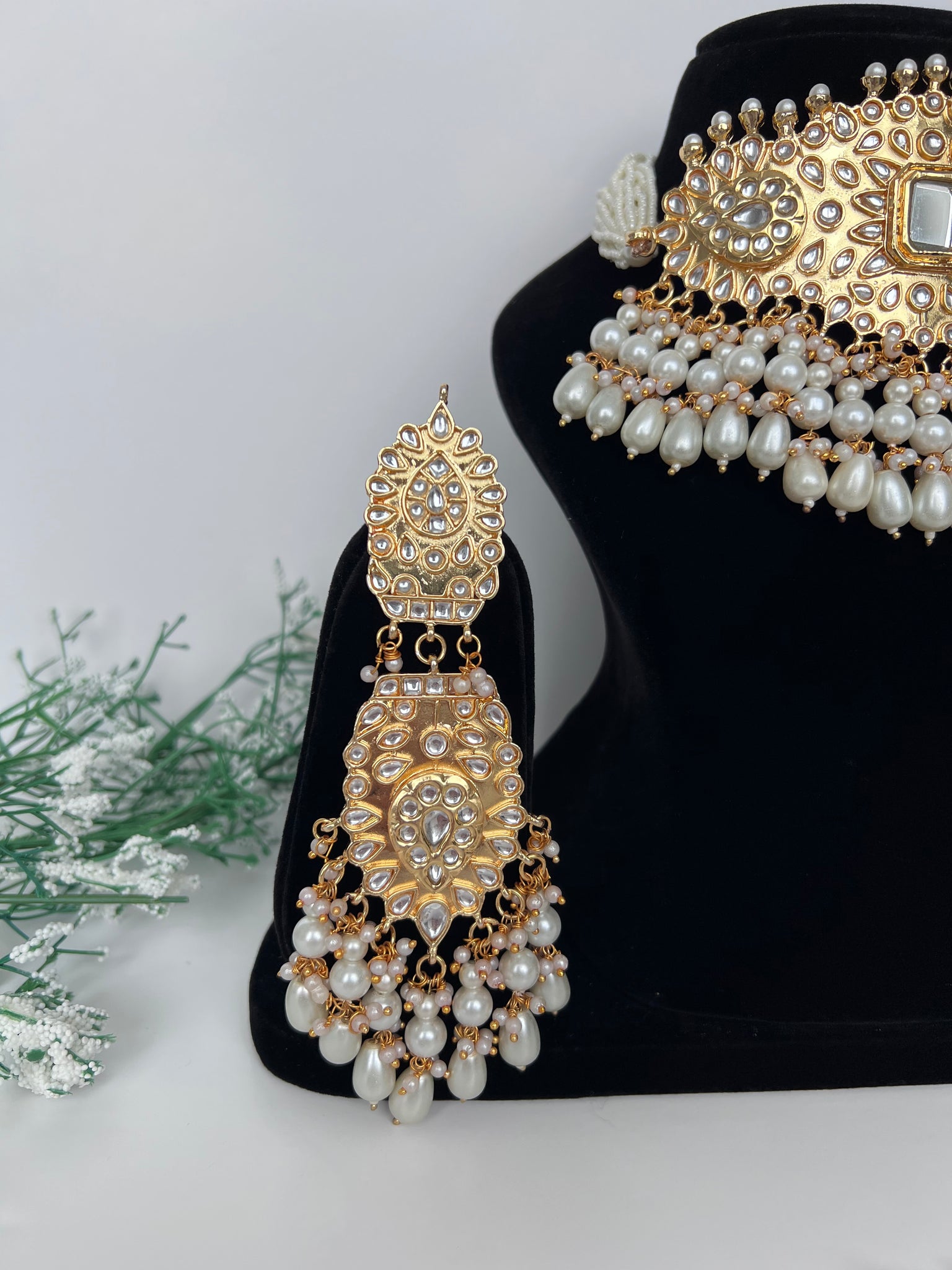 A beautiful imitation Pachi kundan choker set with earrings and tikka