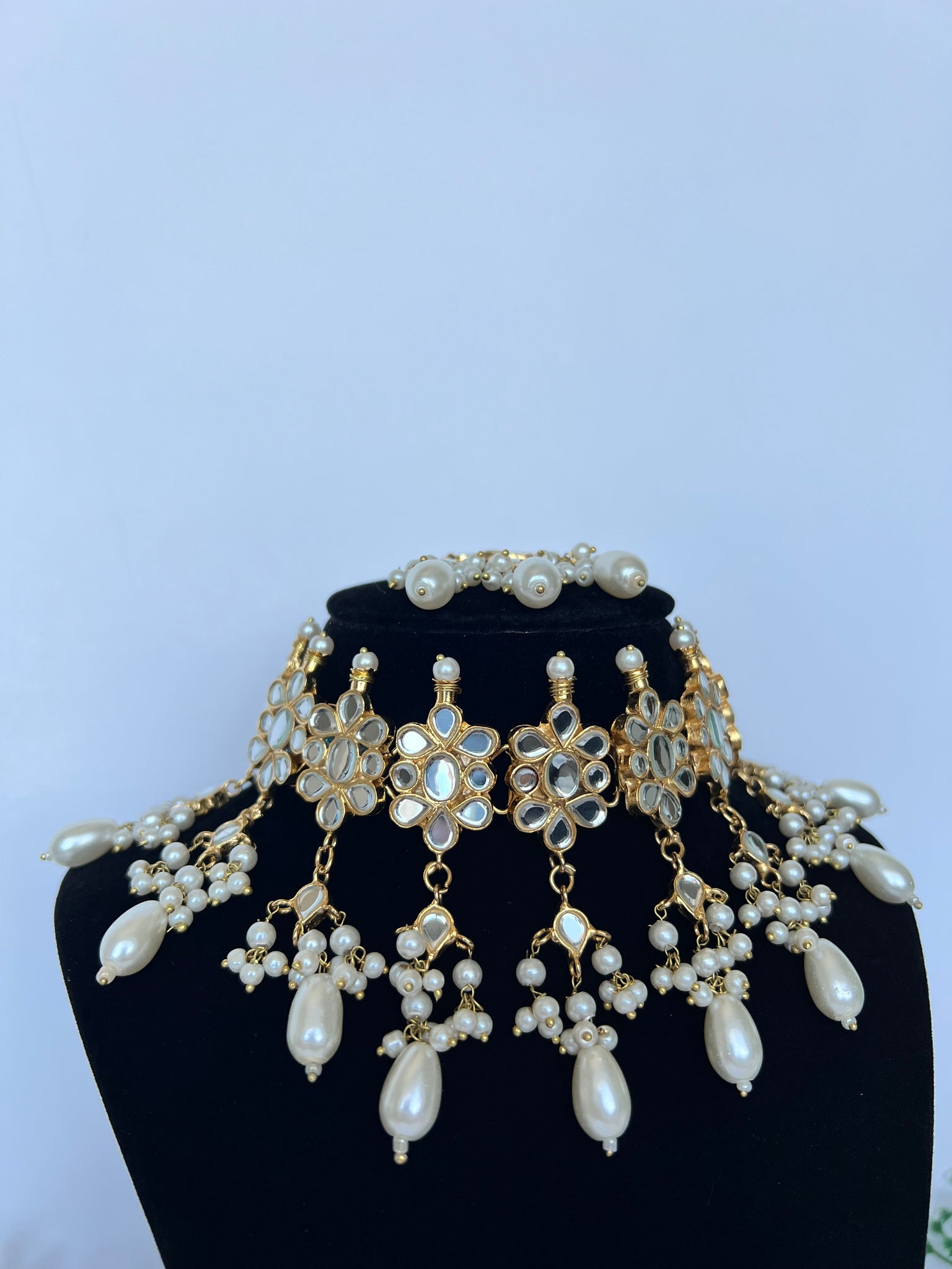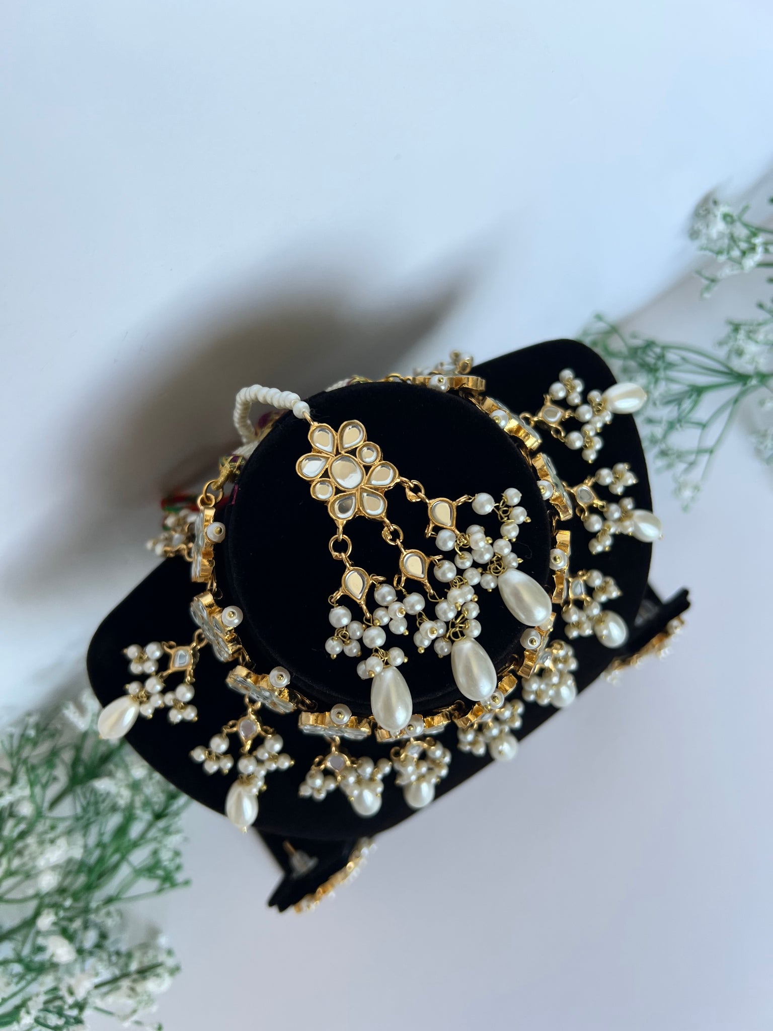 Pakistani thappa kundan in golden, can be worn as a necklace or choker comes with lightweight earrings’
