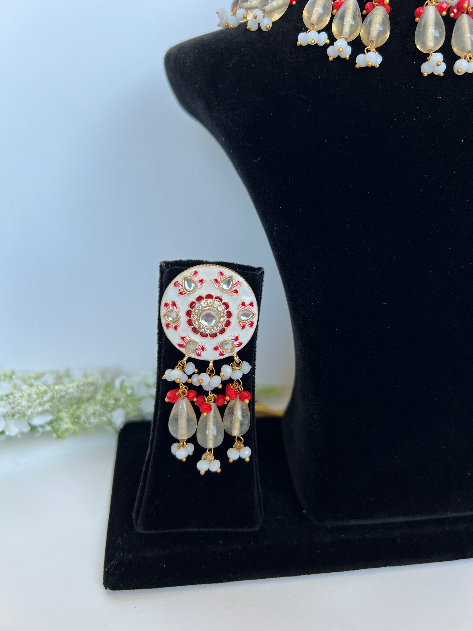 Stunning white and red meenakari choker set with studs