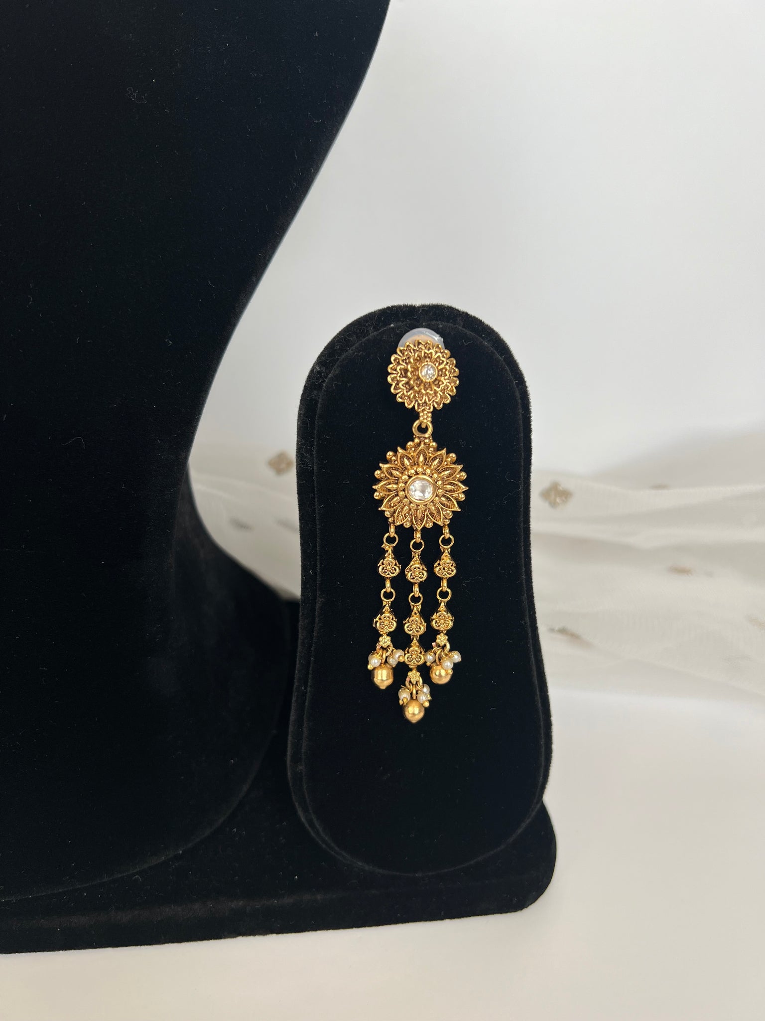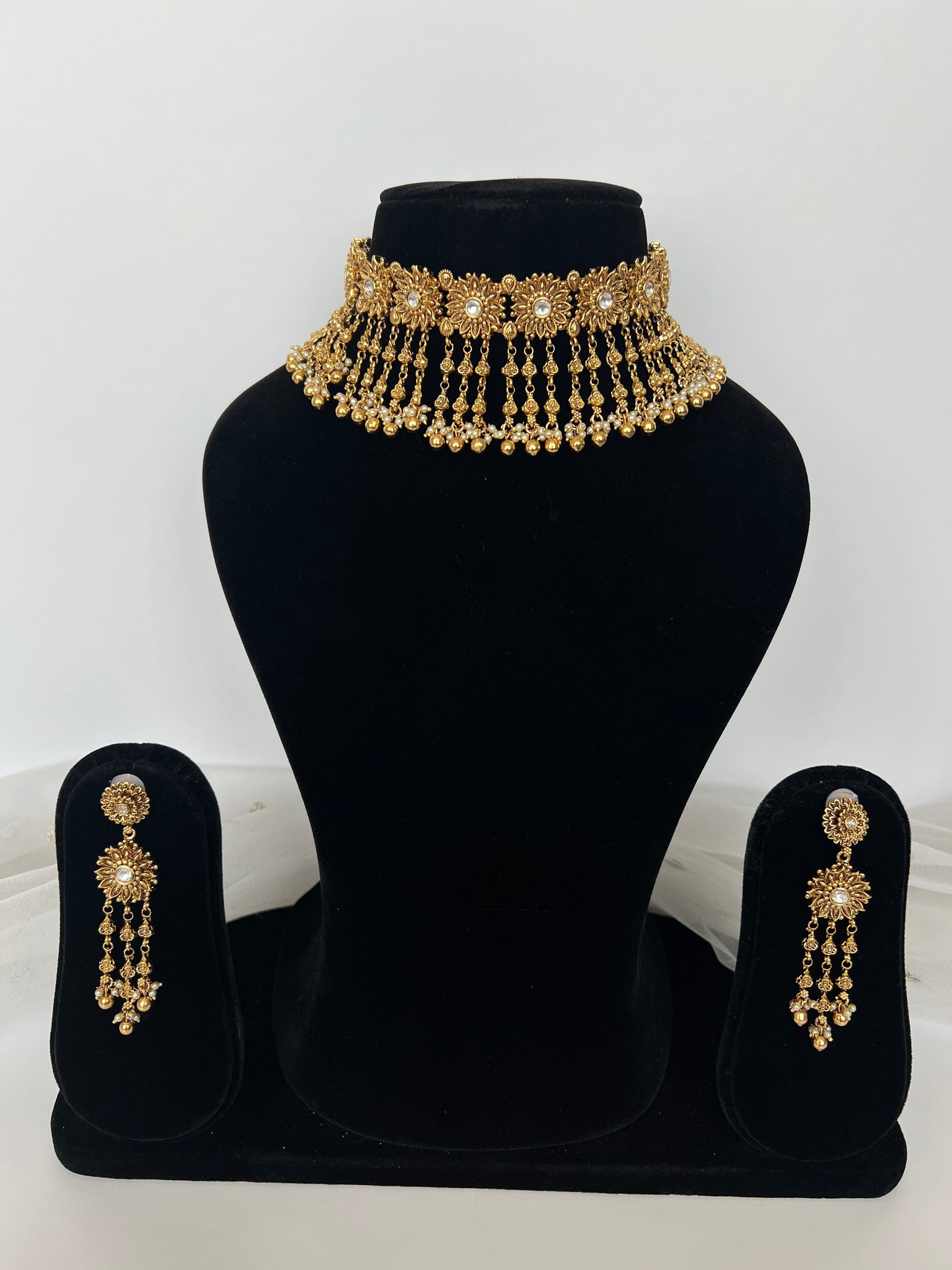 Antique gold plated with kundan set with drops and earrings