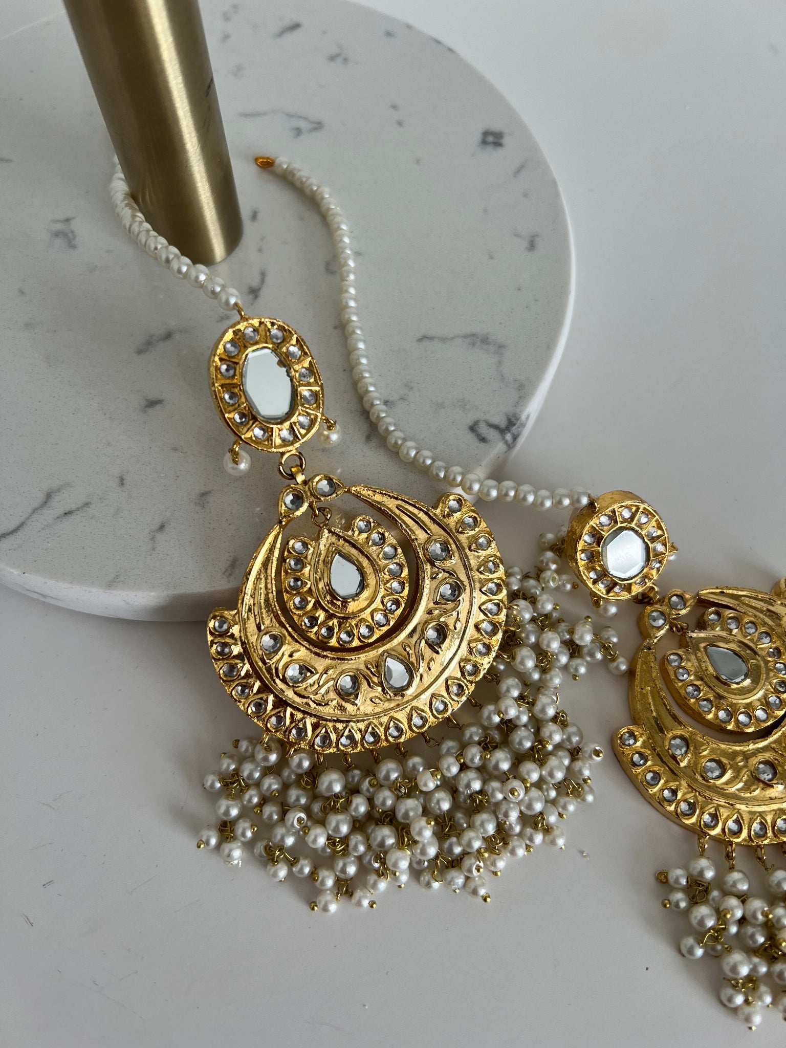 Stunning statement earring in 22k gold plated thappa kundan - gold