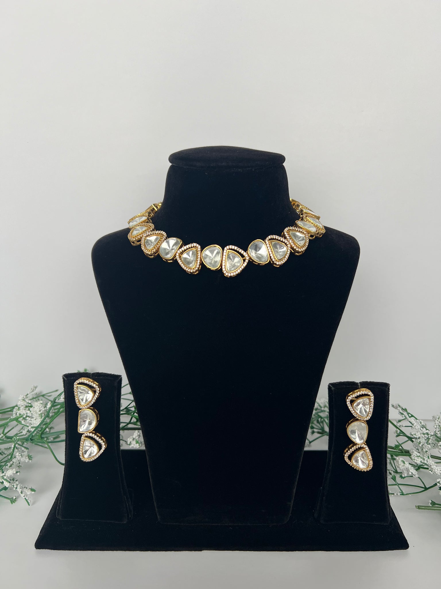 A stunning uncut kundan necklace set with drop earrings, something unique and modern