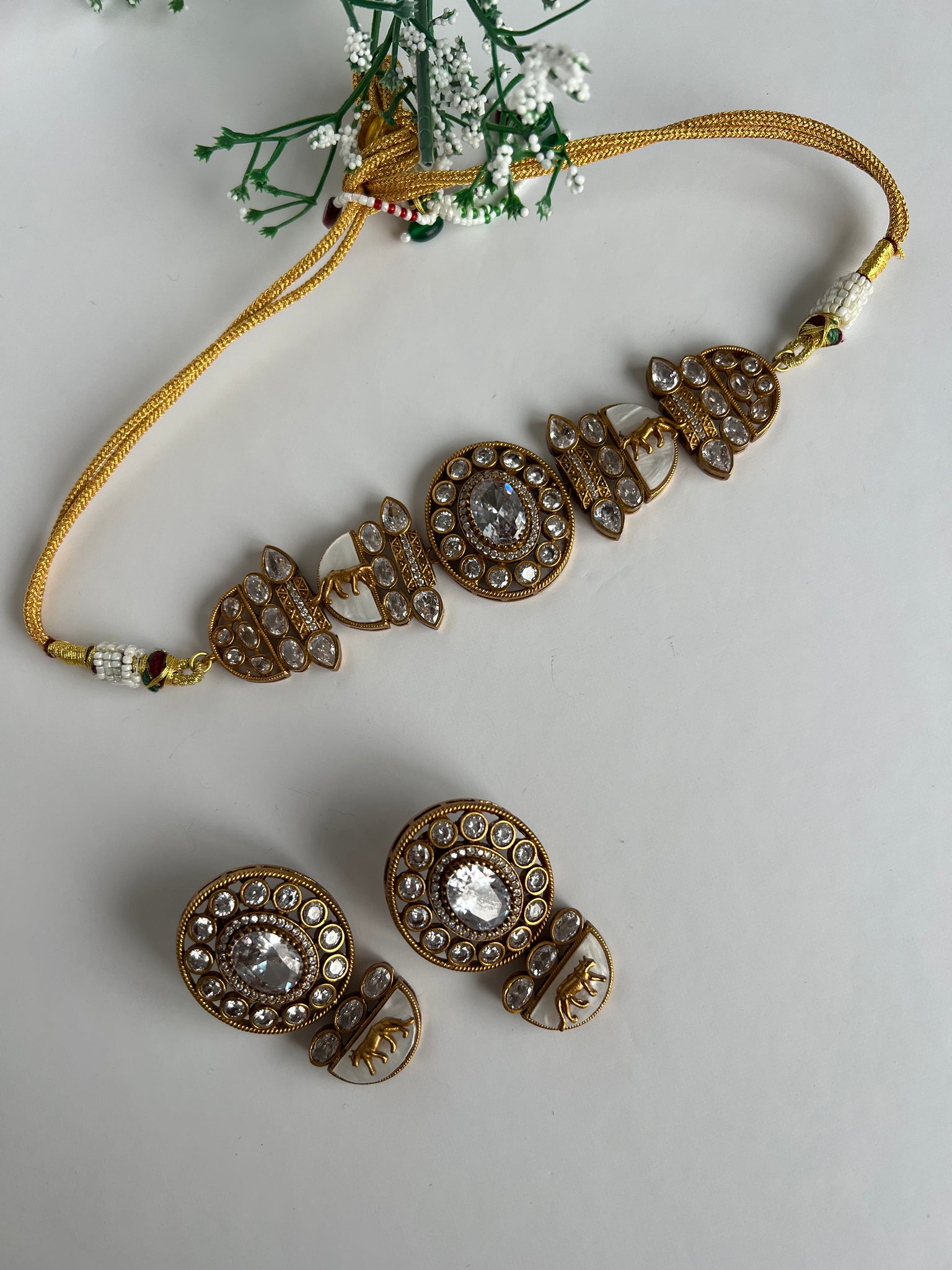 Stunning Tiyani kundan sabyasachi choker set with earrings. Lightweight, in white