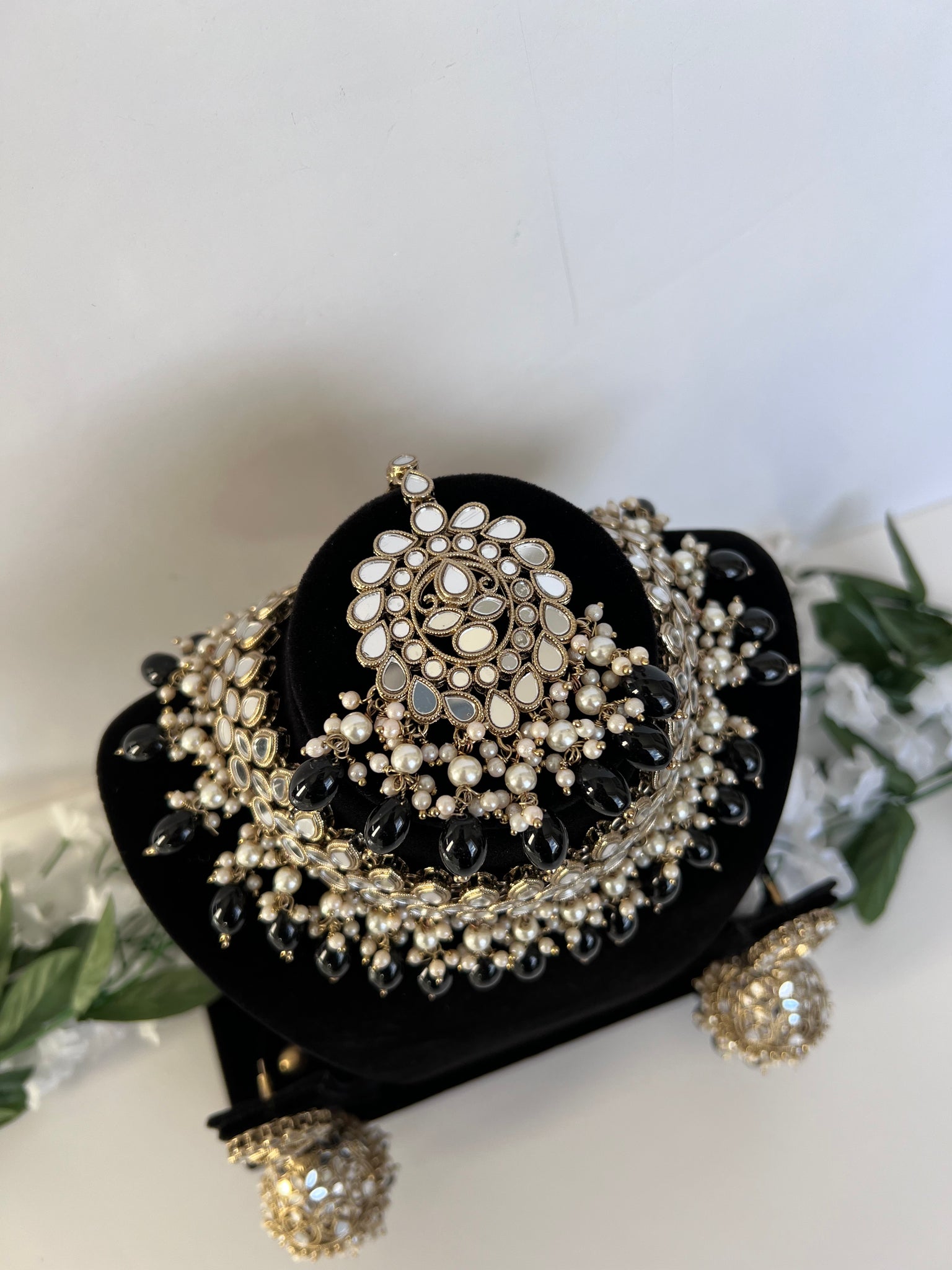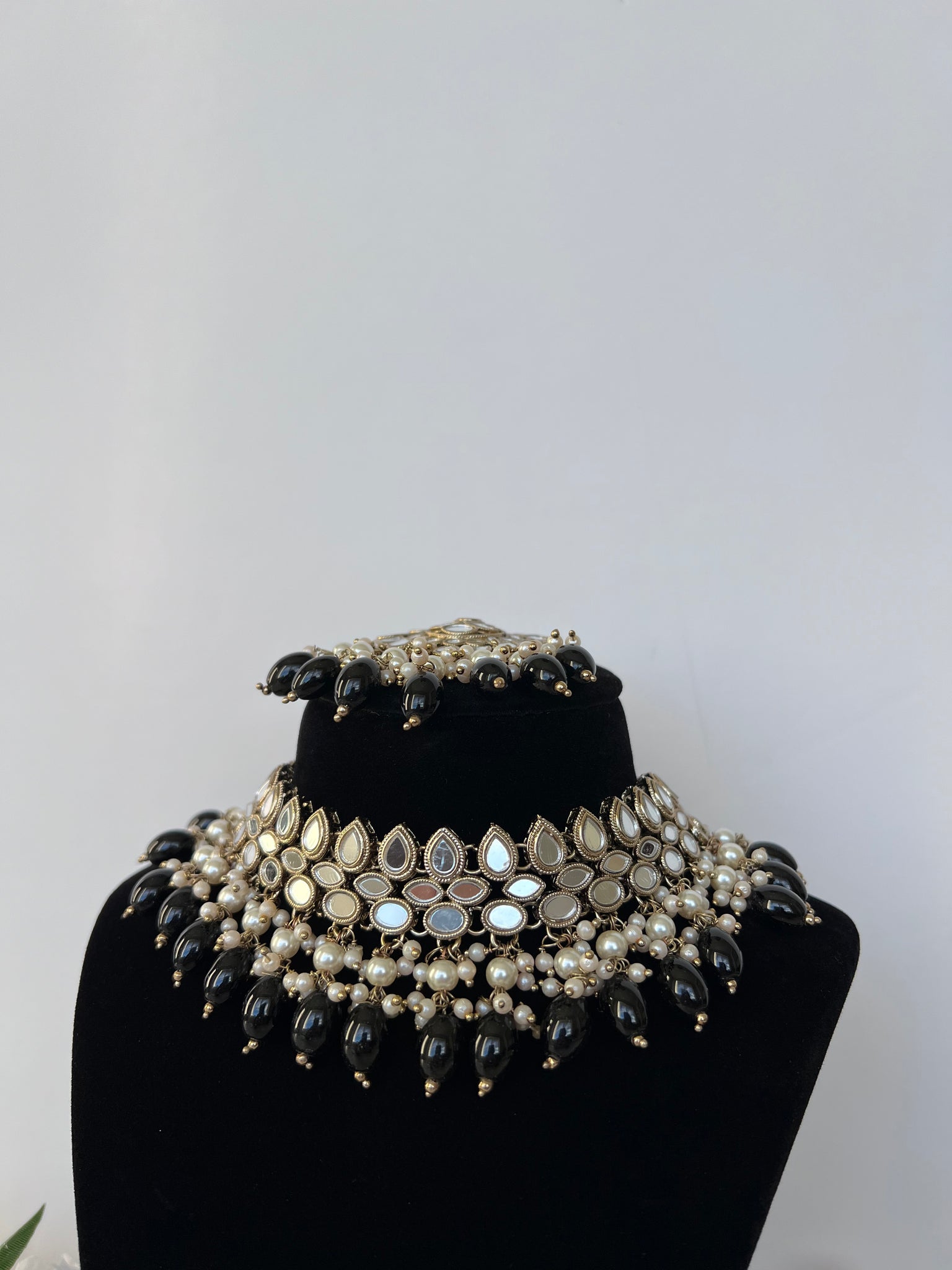 Black Pearl sheesha set with jhumki and tikka