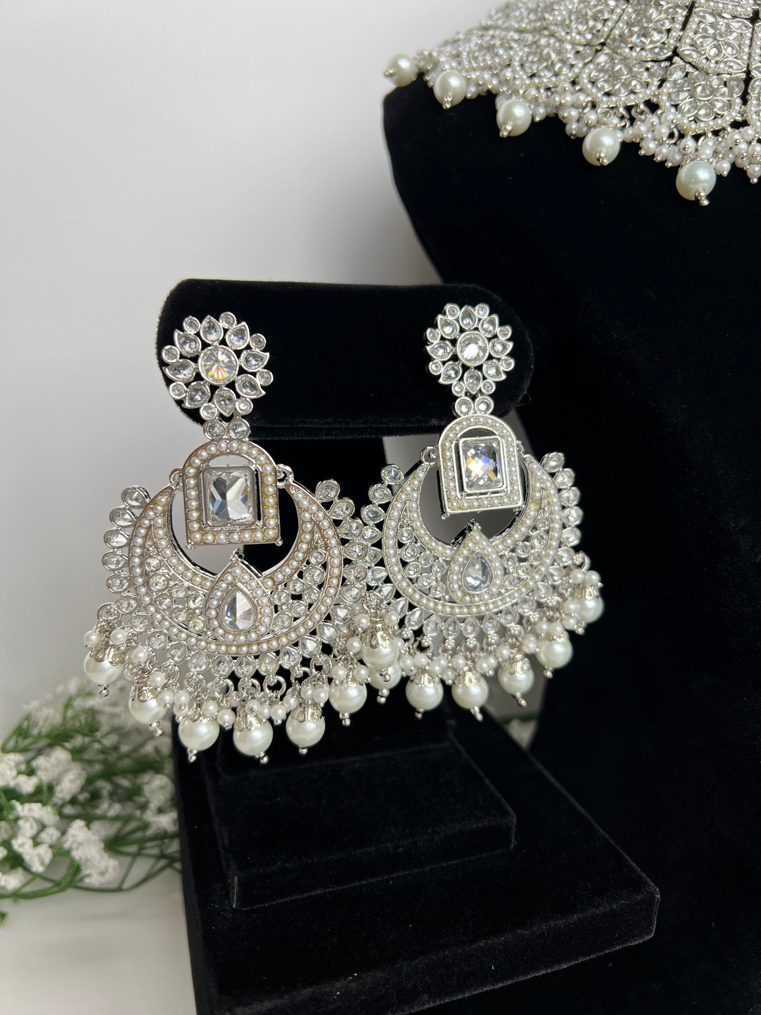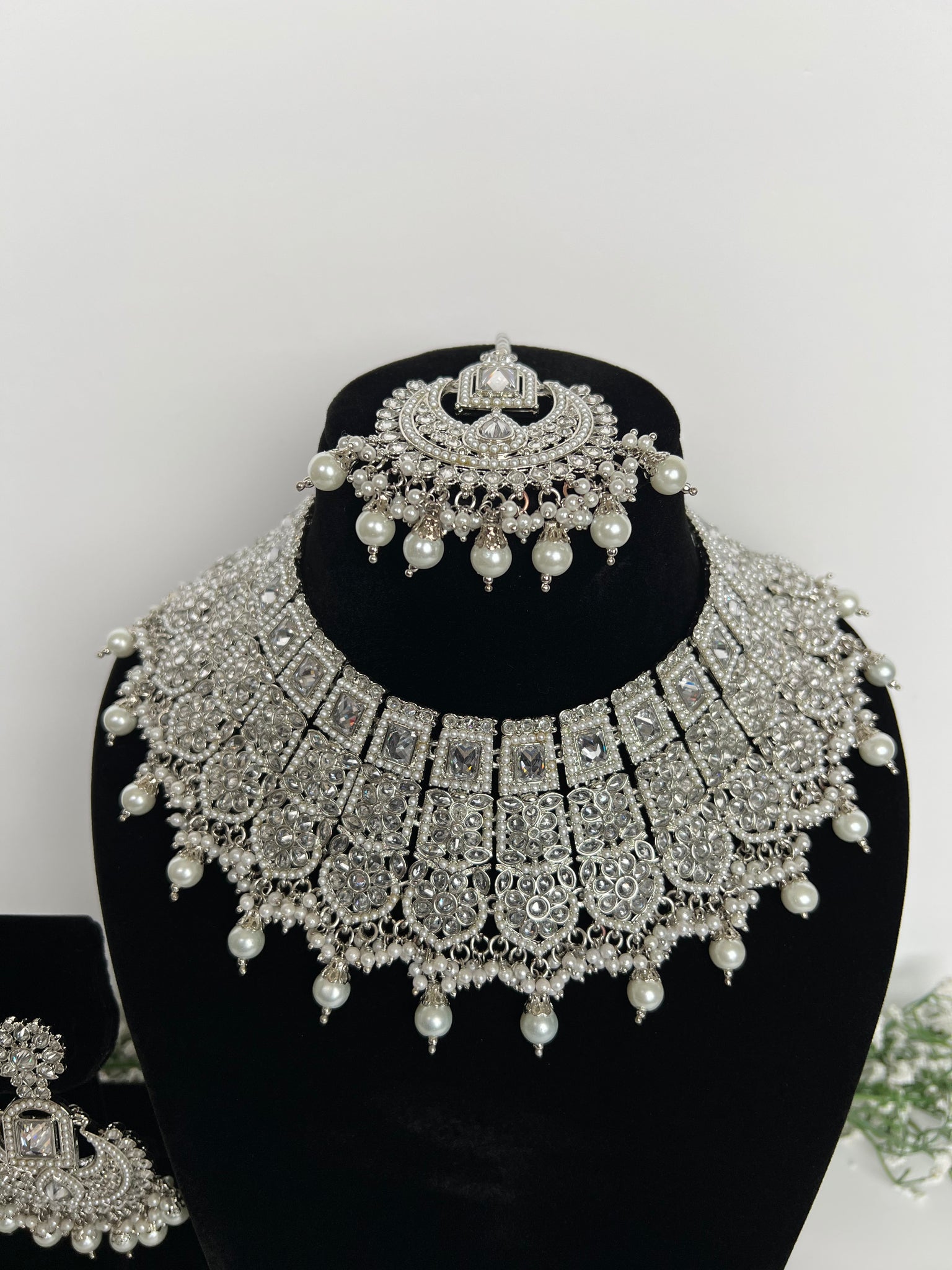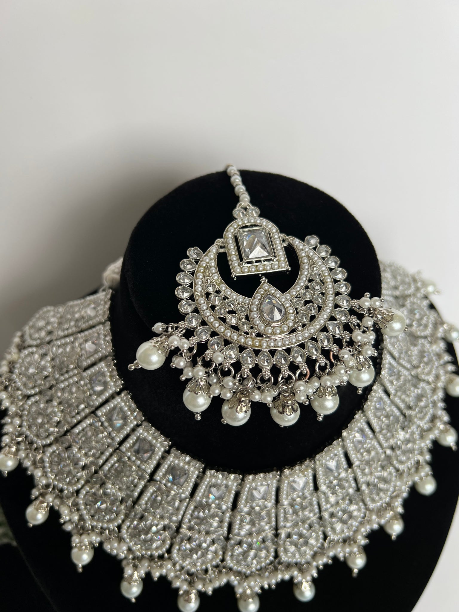 A beautiful silver detailed semi bridal set with beautiful earrings and tikka