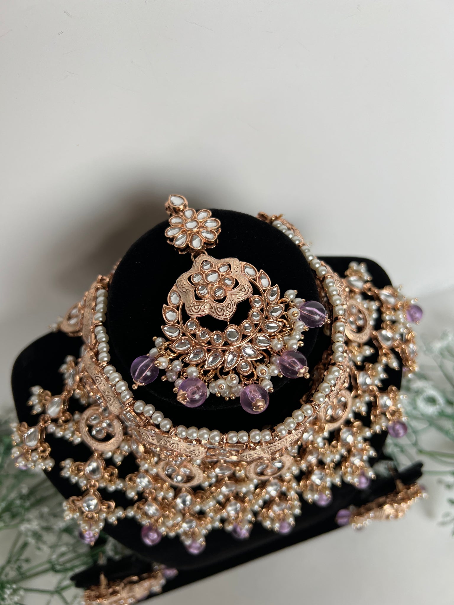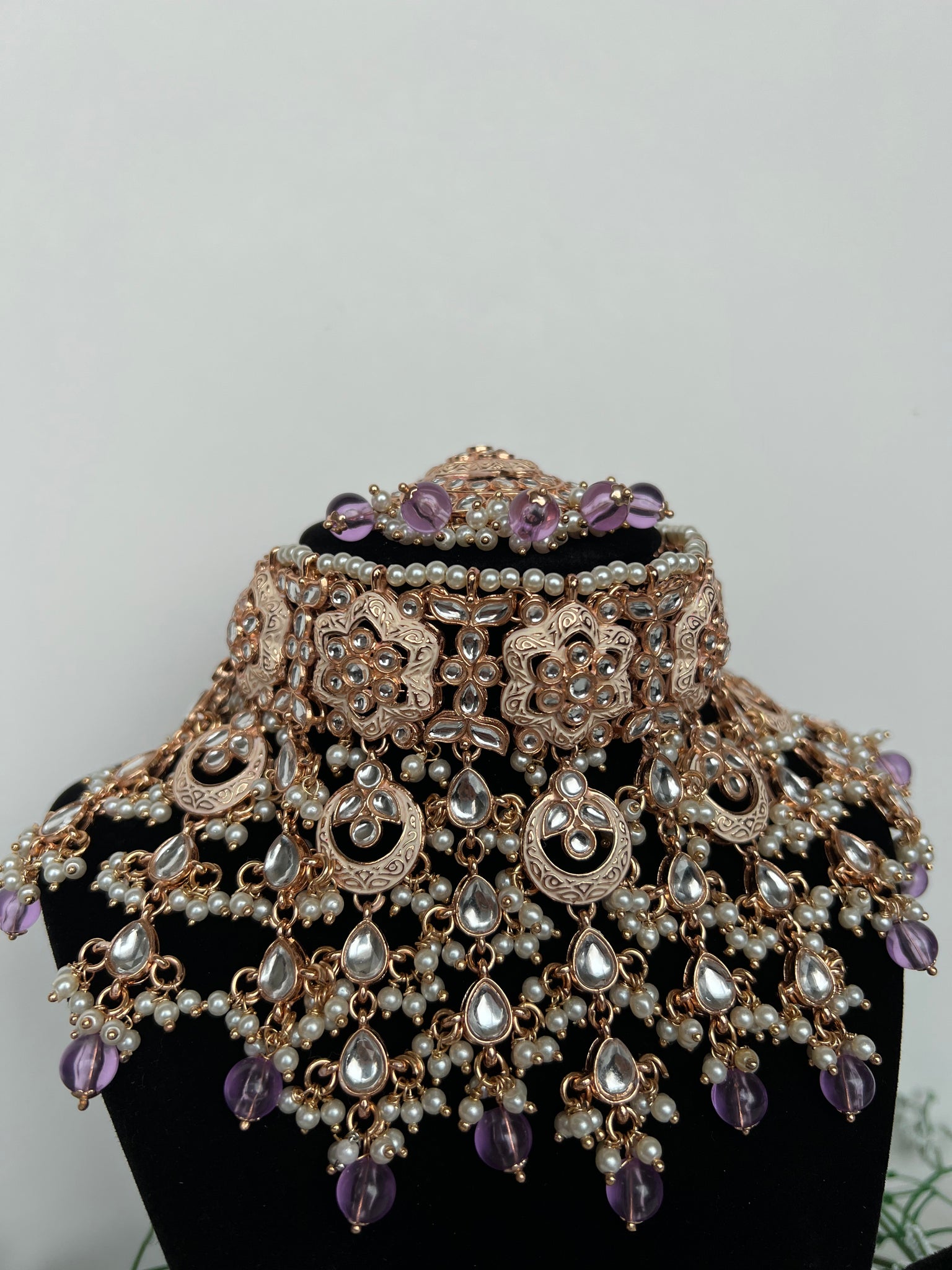 Meenakari kundan hand painted set in lilac purple with earrings and tikka