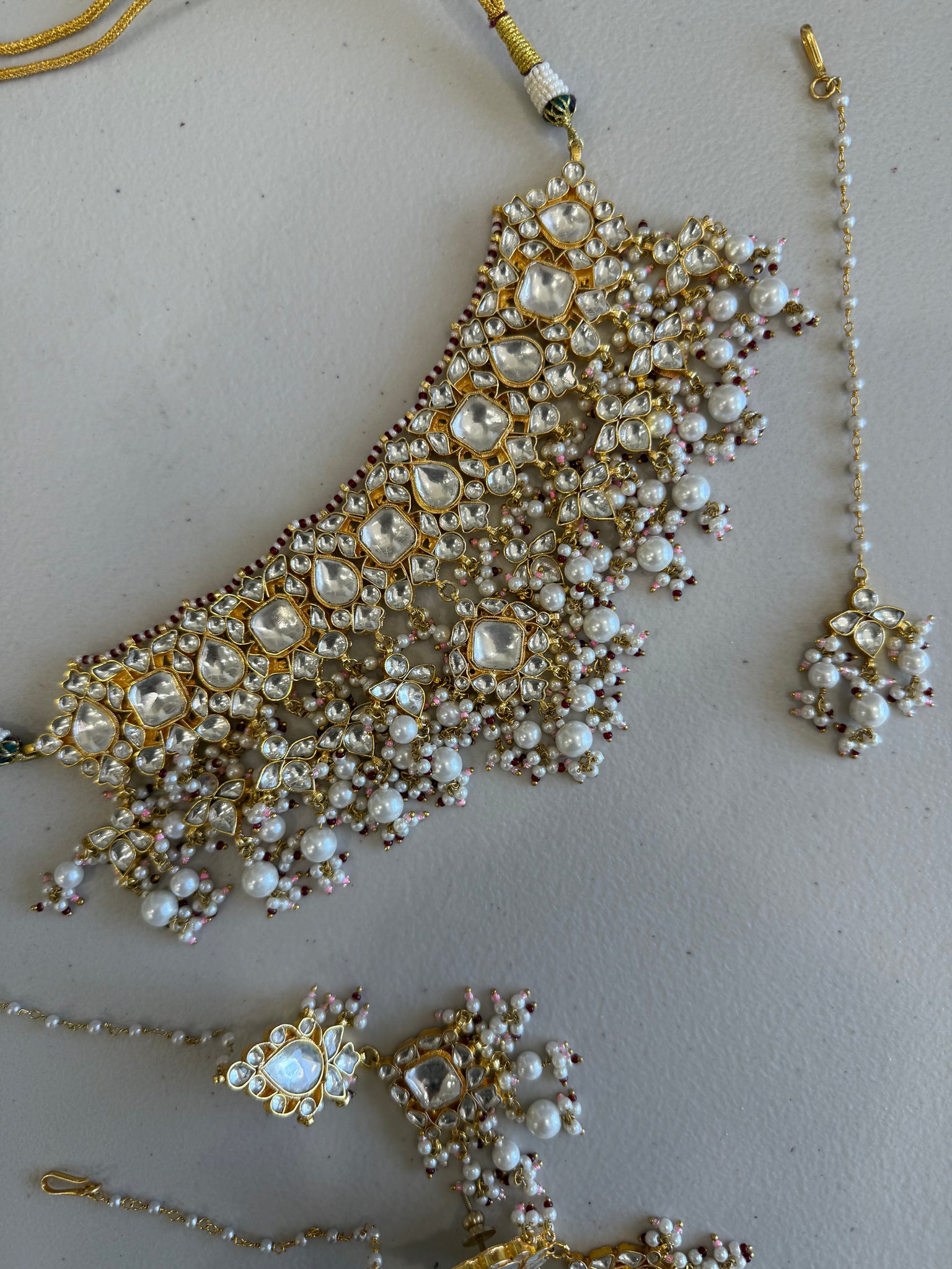 Gorgeous and luxury Pachi kundan choker set with beading, comes with earrings and tikka to match’