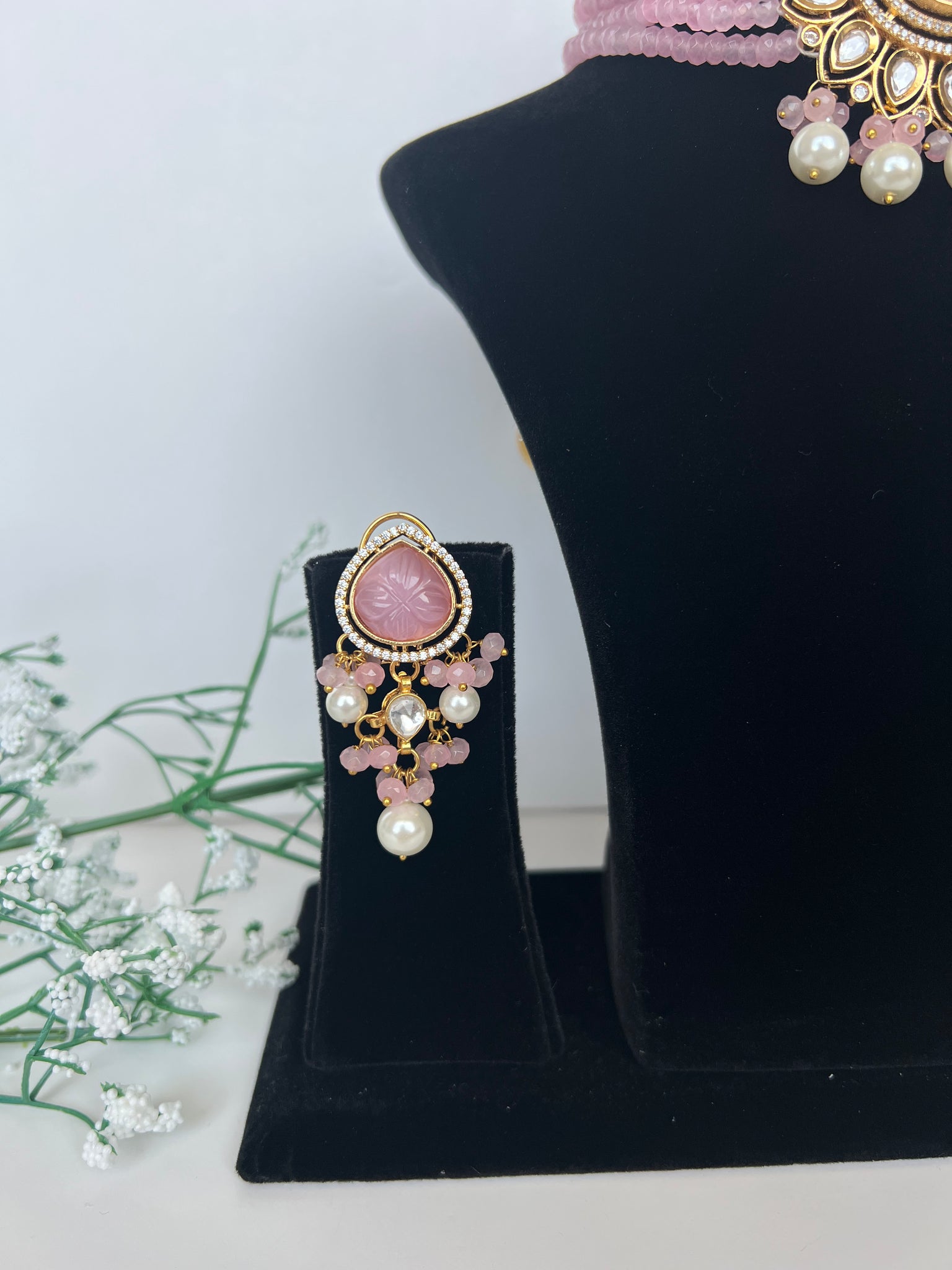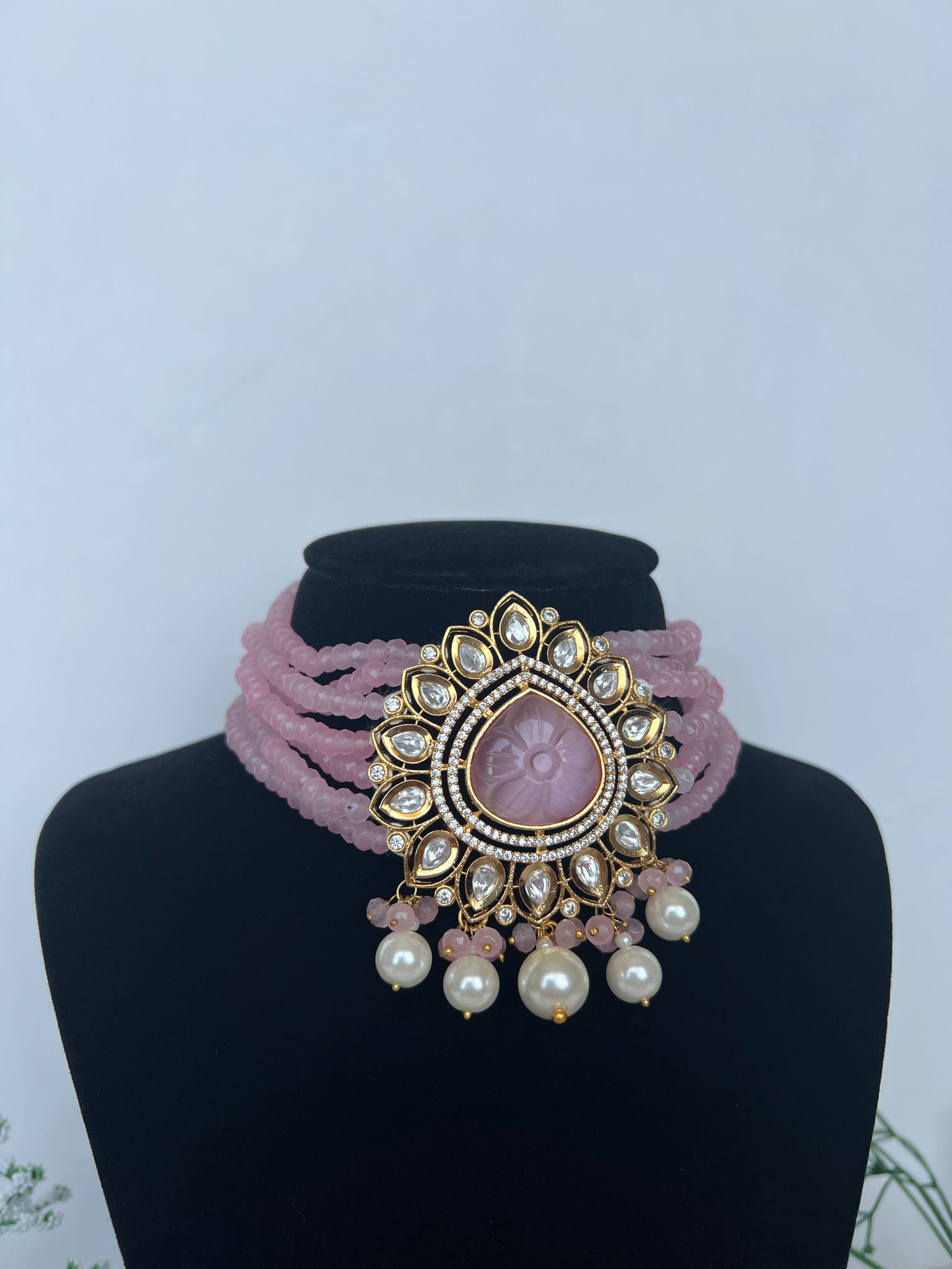 Tiyani kundan choker inbaby pink with amarpali stones. 22K gold plated