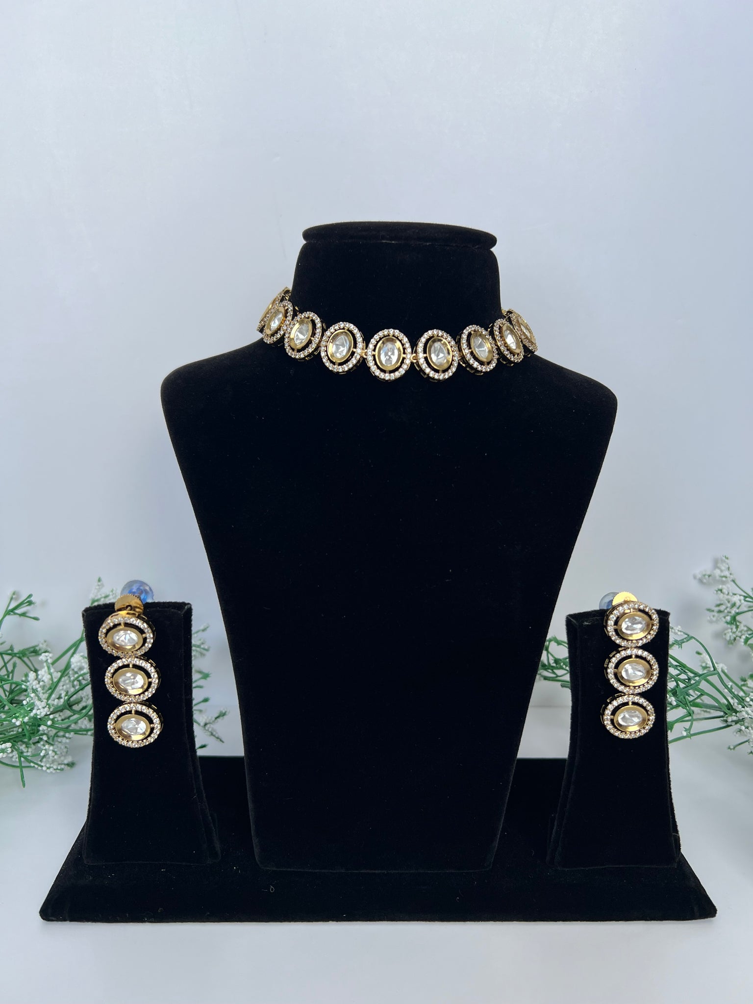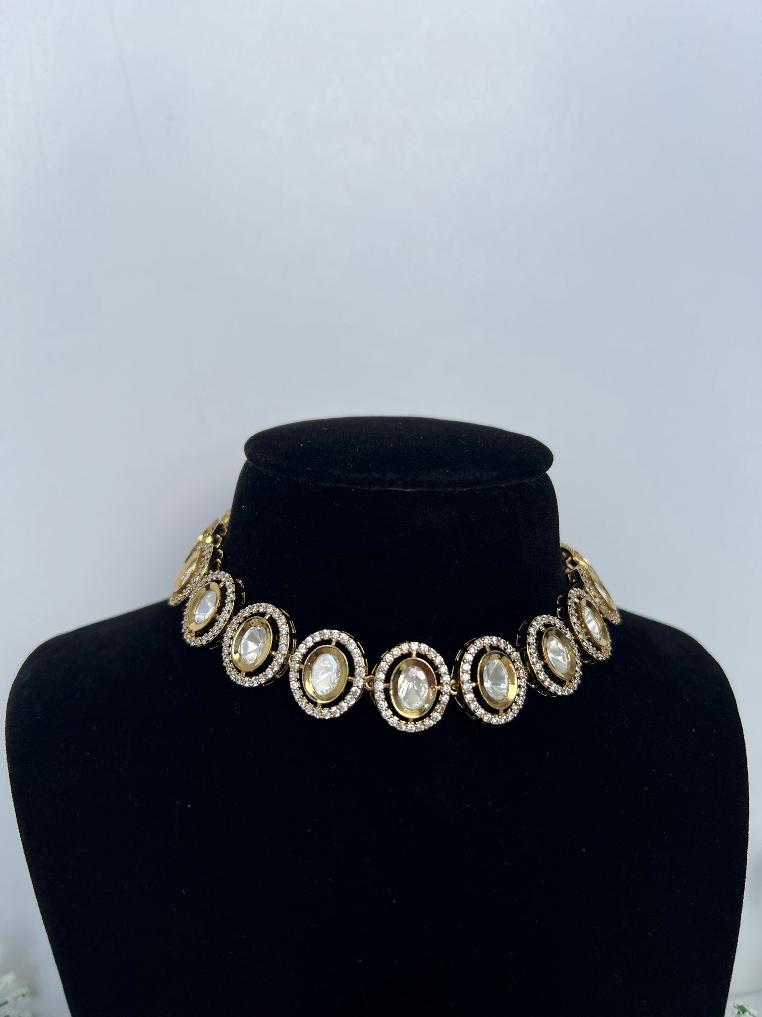 Beautiful dainty and sleek uncut kundan choker with oval stone work