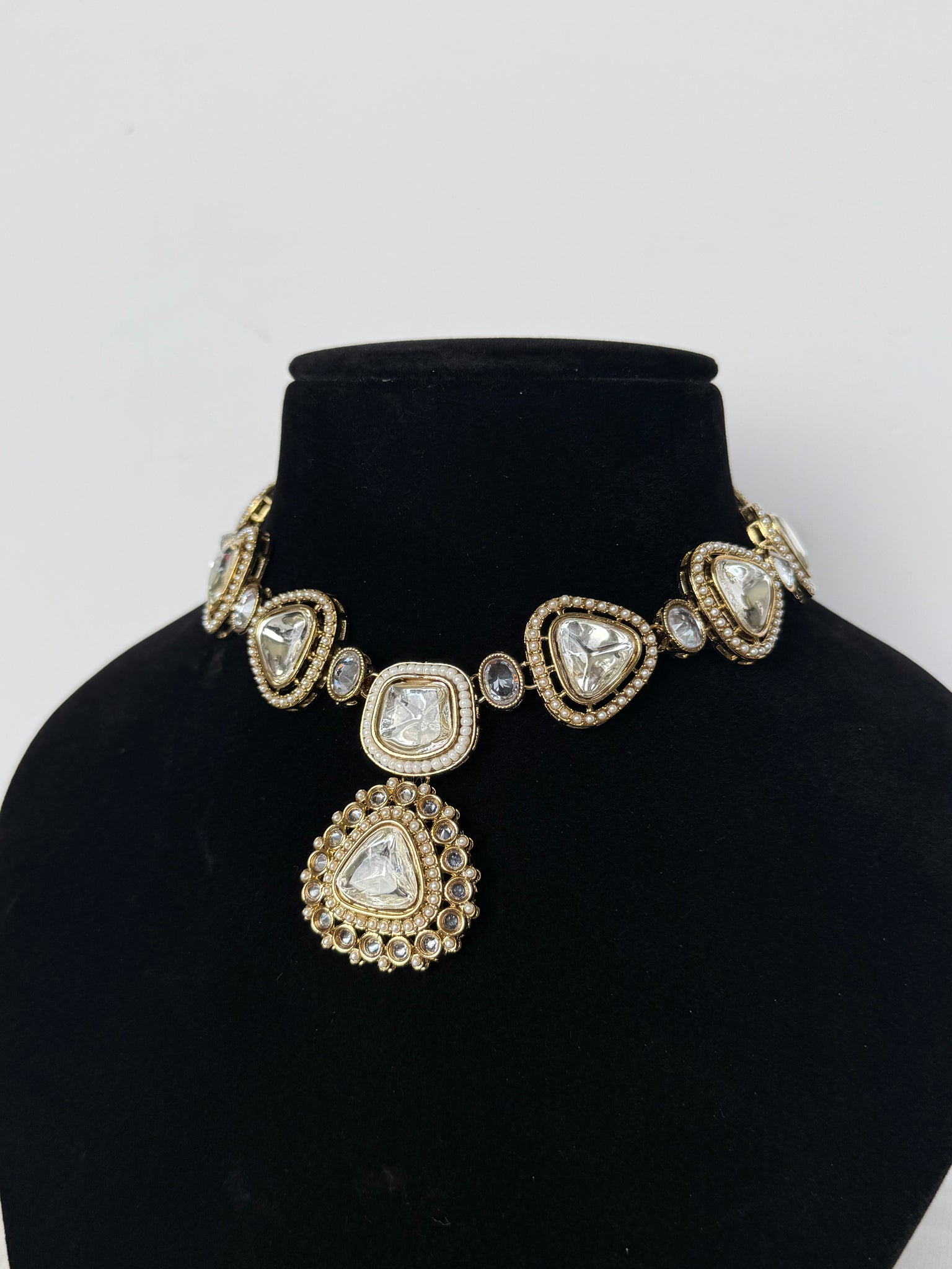 Stunning silver and white gold uncut kundan set with a pendant and earrings