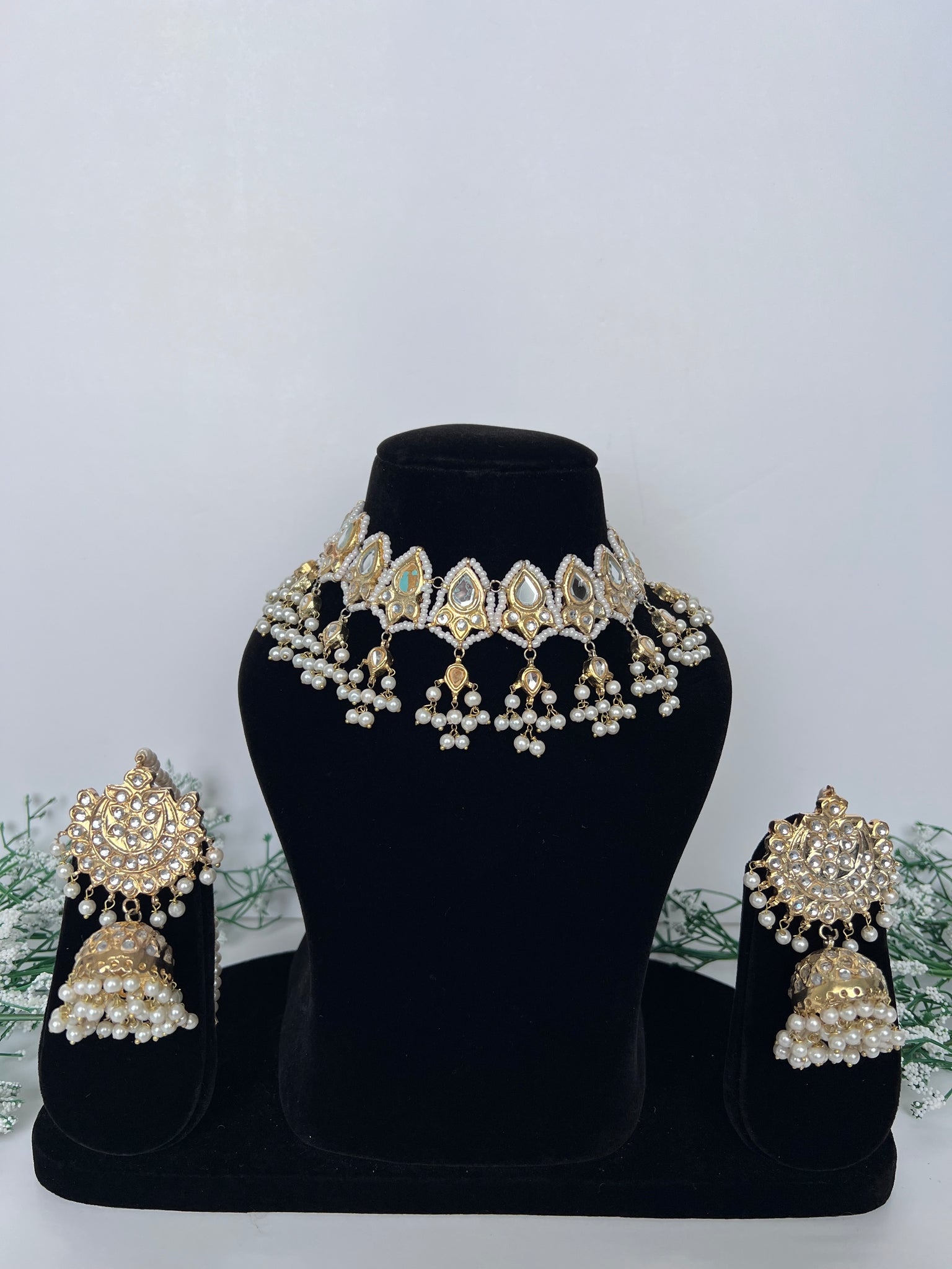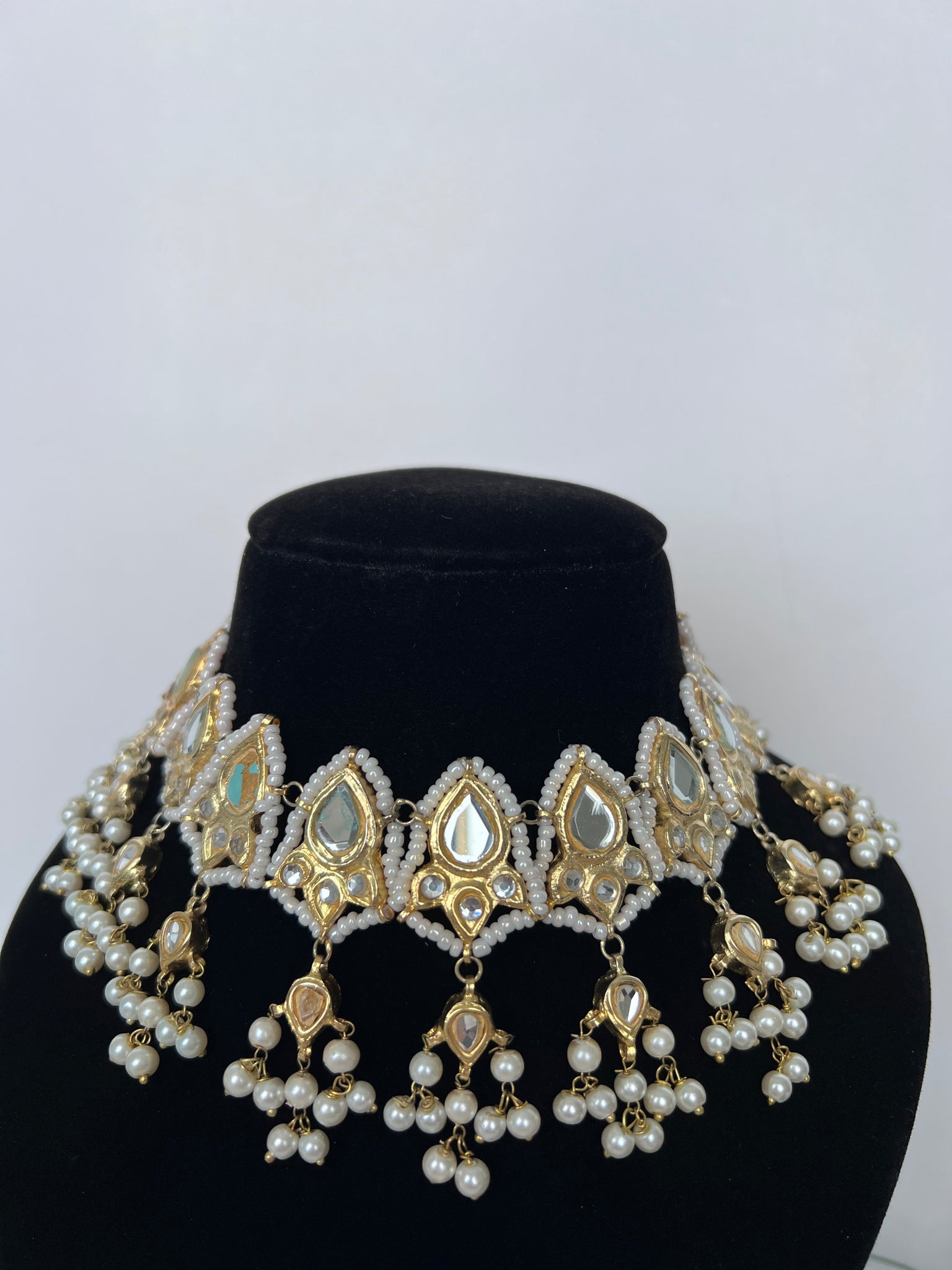 A stunning Pakistani thappa kundan choker set with jhumki earrings, can be worn as a necklace or choker. 22K gold plated